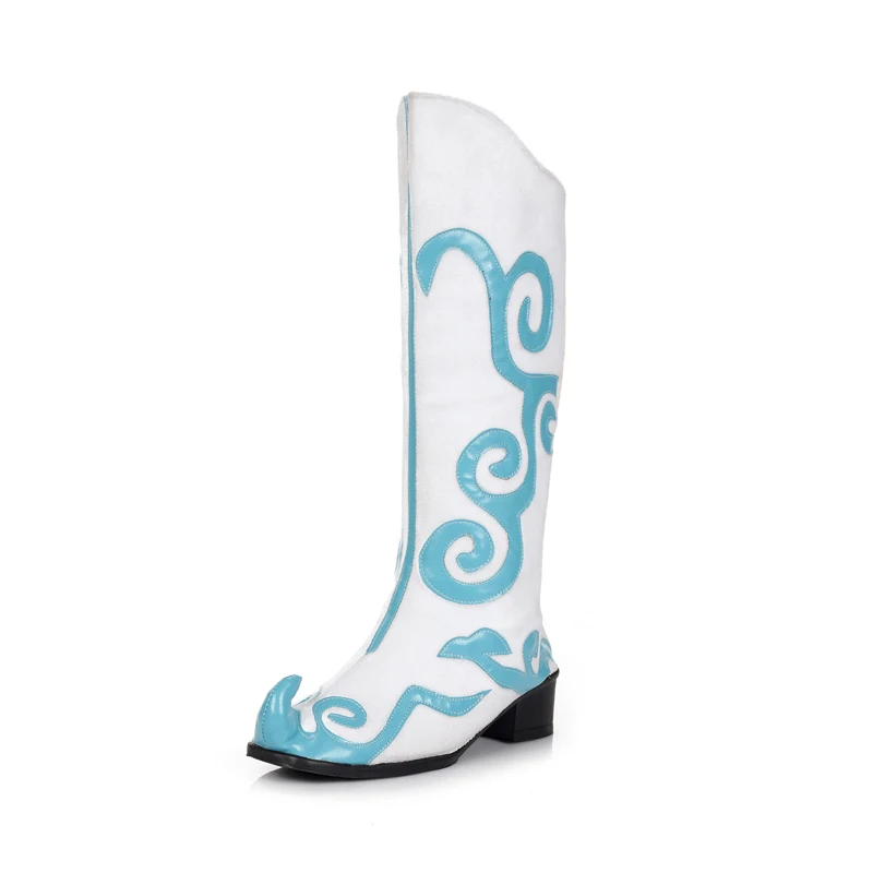 Белые КИТАЙСКИЕ ТИБЕТСКИЕ сапоги для женщин; Монгольская обувь для костюмированной вечеринки; Национальная танцевальная обувь в стиле ретро; Женская обувь для верховой езды
