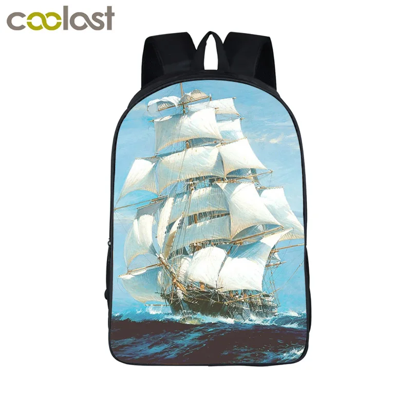 Рюкзак с принтом парусника для подростков, мальчиков, школьные сумки, лодка на море, Книжная сумка, подарок, Mochila Escolar, для молодых мужчин и женщин, дорожная сумка