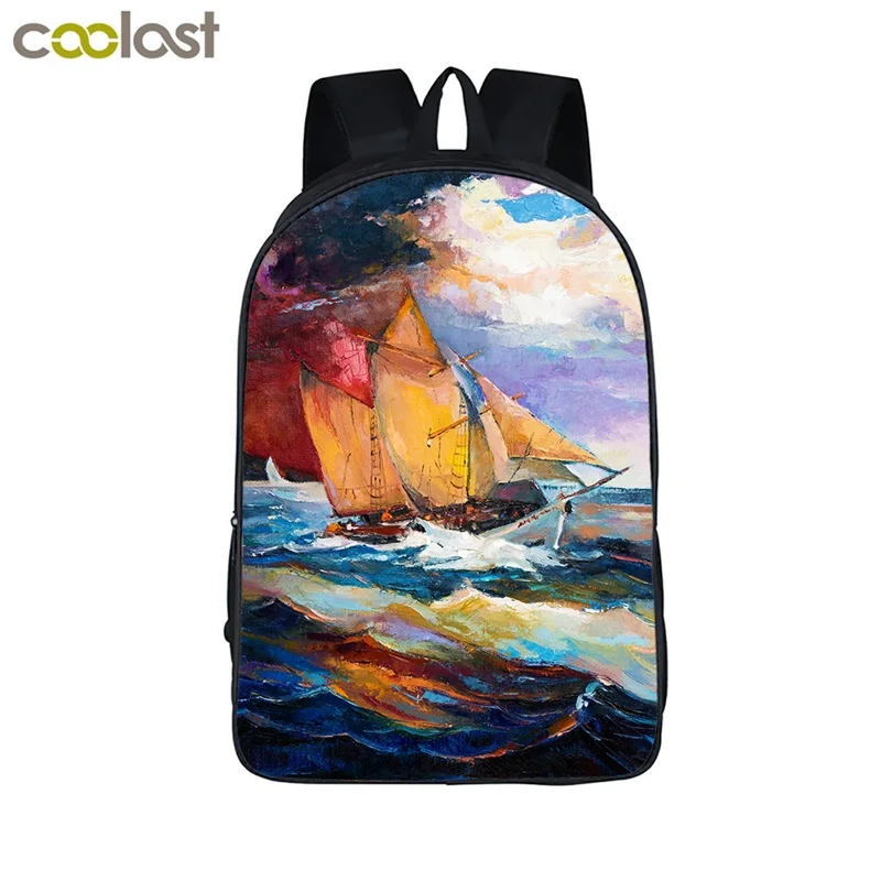 Рюкзак с парусным принтом для подростков, школьные ранцы для мальчиков, сумка для книг с лодкой на море, подарок для молодых мужчин и женщин