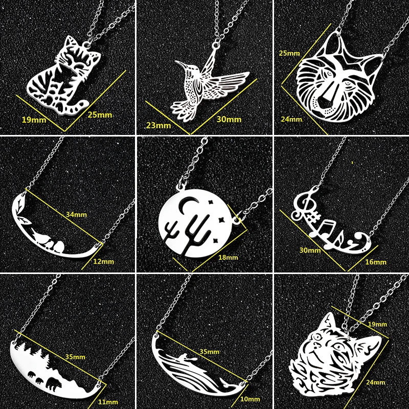 Женское Ожерелье с кулоном в виде животных оригами, ювелирные изделия из нержавеющей стали, ожерелье-чокер с изображением волка кошки колибри