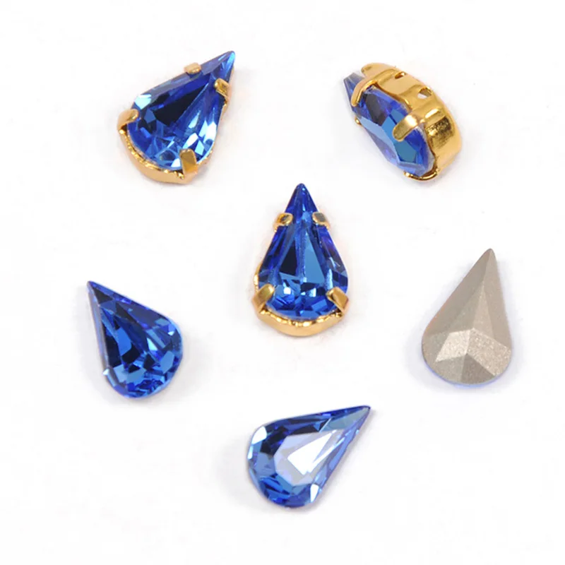 YANRUO 4300 груша сапфир Пришивание на стразы камни для украшения бриллианты ремесла острые капли камни с когтями рамки