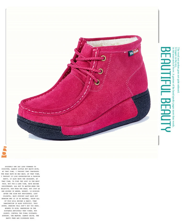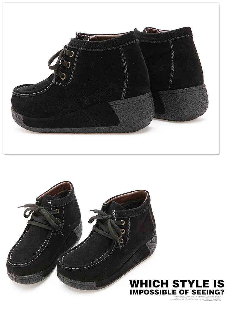 Ботинки женские замшевые на платформе, со шнуровкой и мехом