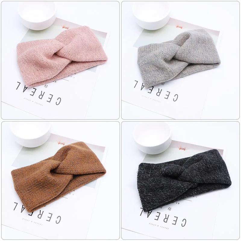 Зимние шерстяные вязаные повязки на голову с перехлёстом для женщин...