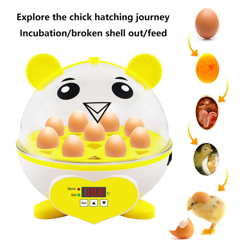 Новый инкубатор Cute Mini 9 яиц, домашний инкубатор, полуавтоматический инкубатор для куриных яиц с мультяшным рисунком