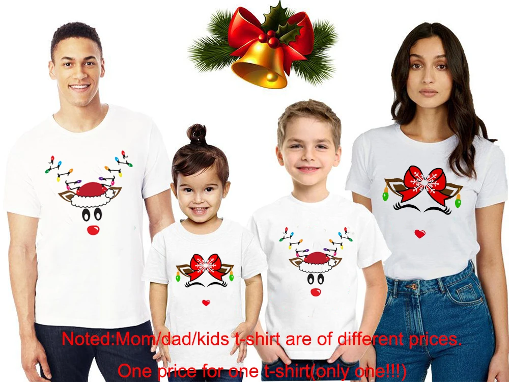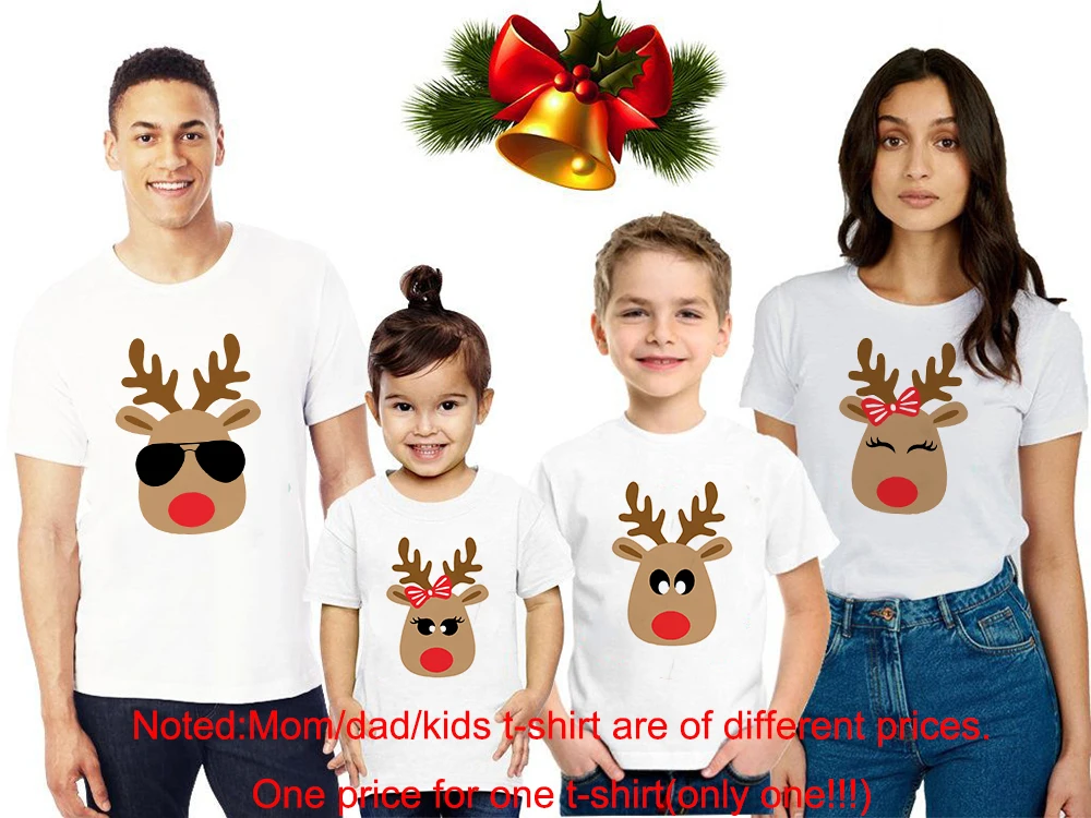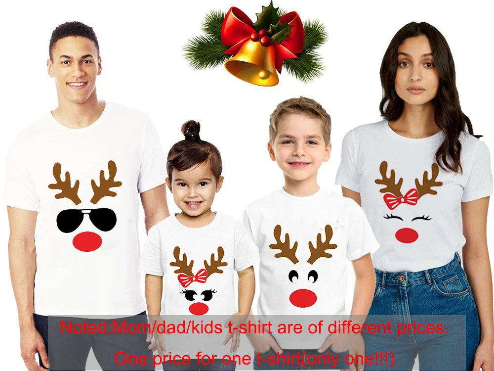 1 предмет, Рождественская одинаковая белая футболка с изображением оленя для всей семьи Одежда для мамы, дочки, папы и сына эстетические футболки Camisetas Harajuku