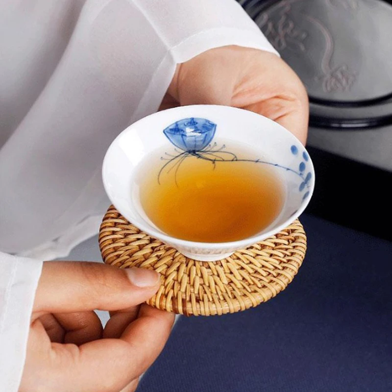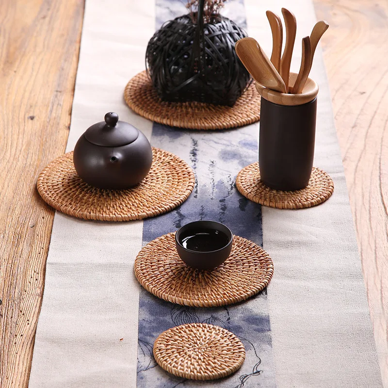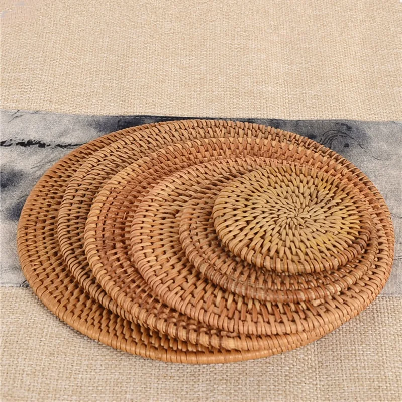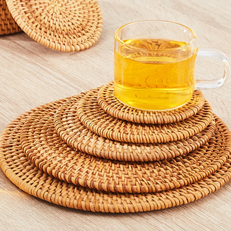 1 шт., круглые подставки под чашу из натурального ротанга