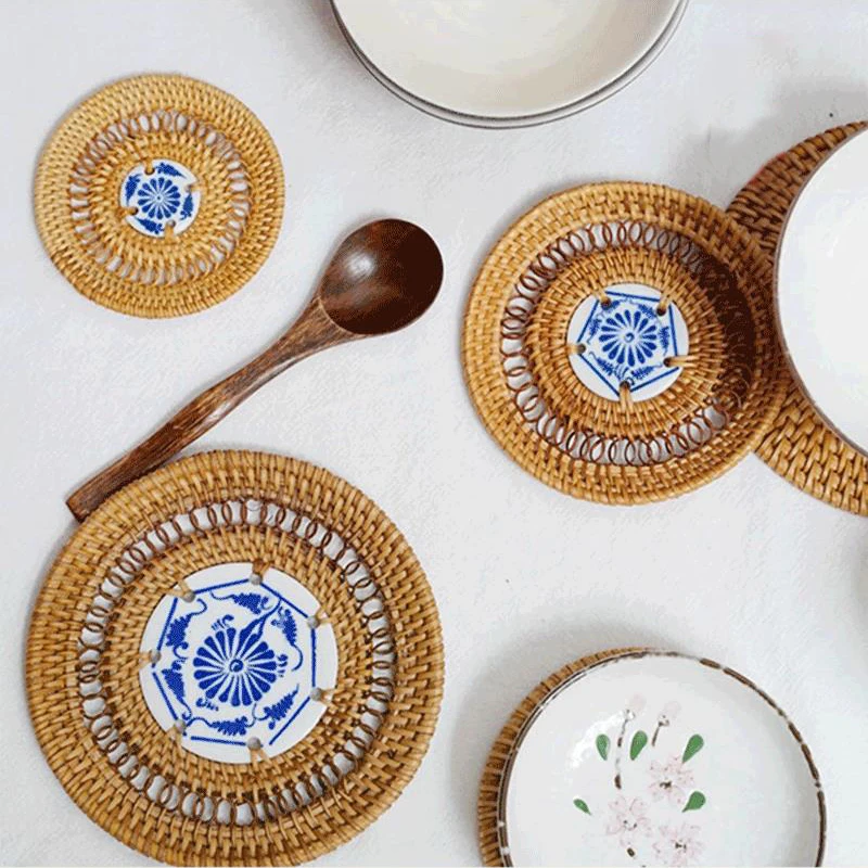 Круглые подставки из натурального ротанга, 1 шт., подставки для чаши, изоляционные подставки ручной работы, коврики для чашек, аксессуары для украшения кухни
