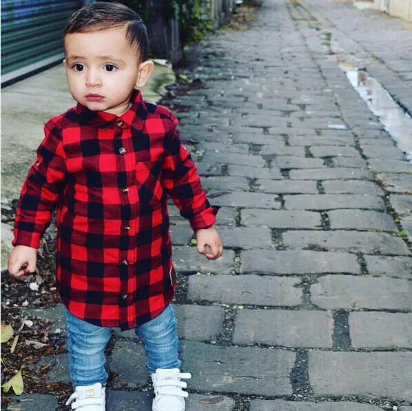 Рубашка хлопковая в клетку, с длинным рукавом, на Рождество, От 1 до 7 лет