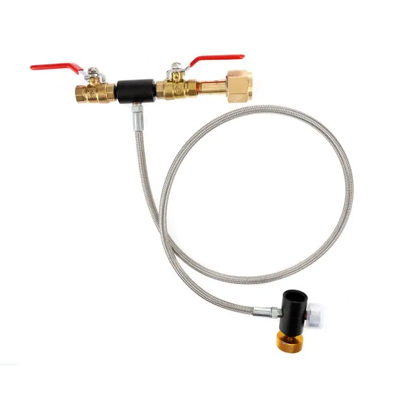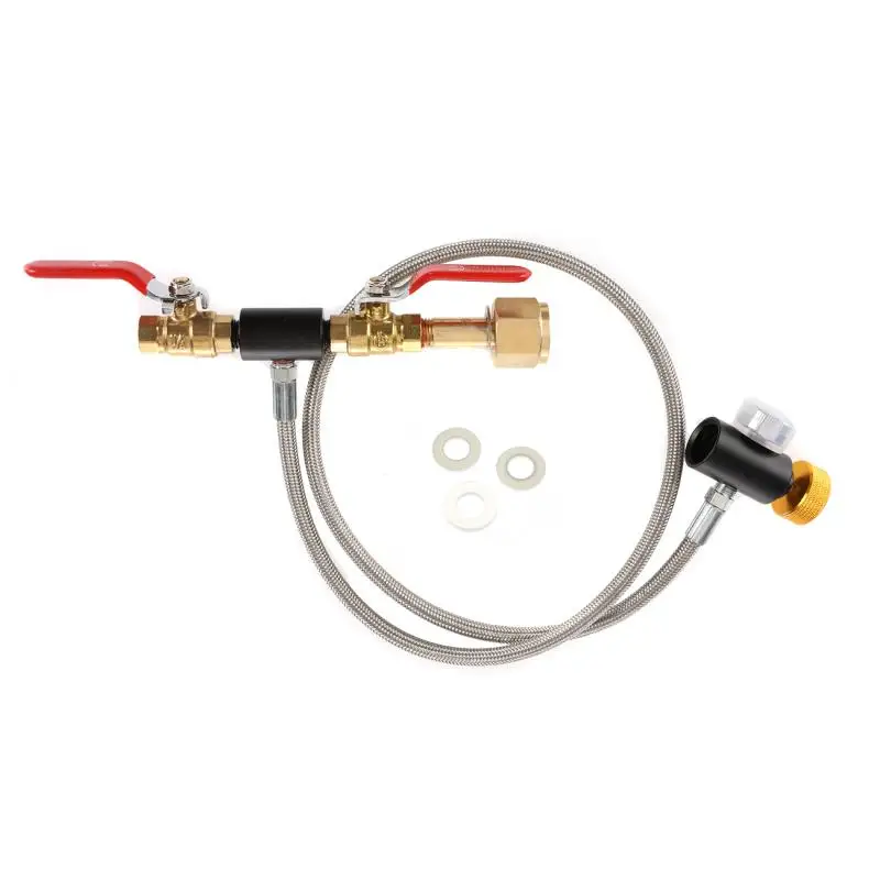 * Двойной клапан для безопасного и удобного использования, с манометром, чтобы гарантировать, что давление не будет превышать спецификацию давления получателя бака.