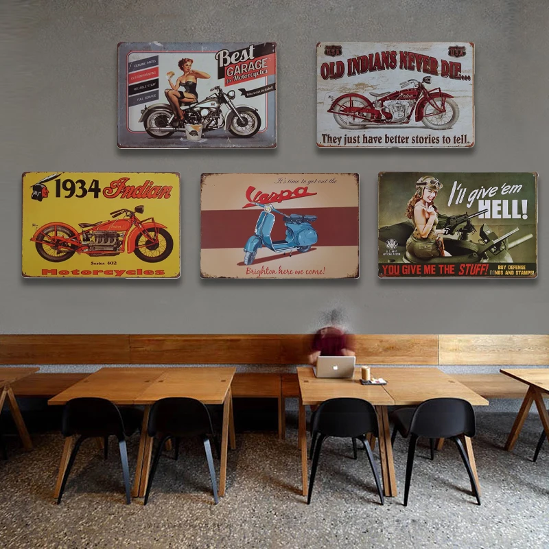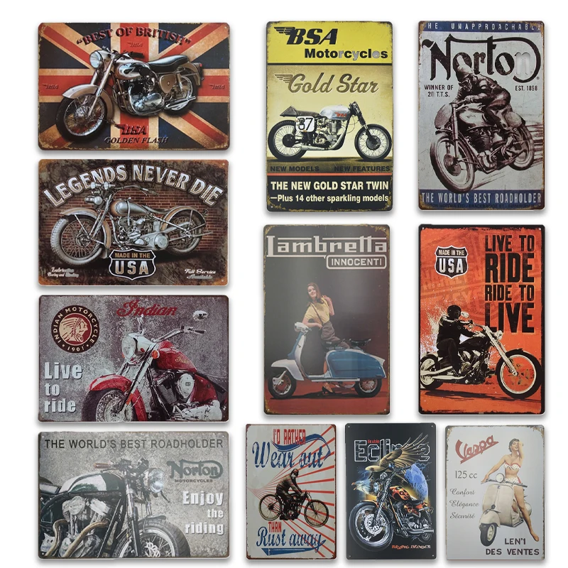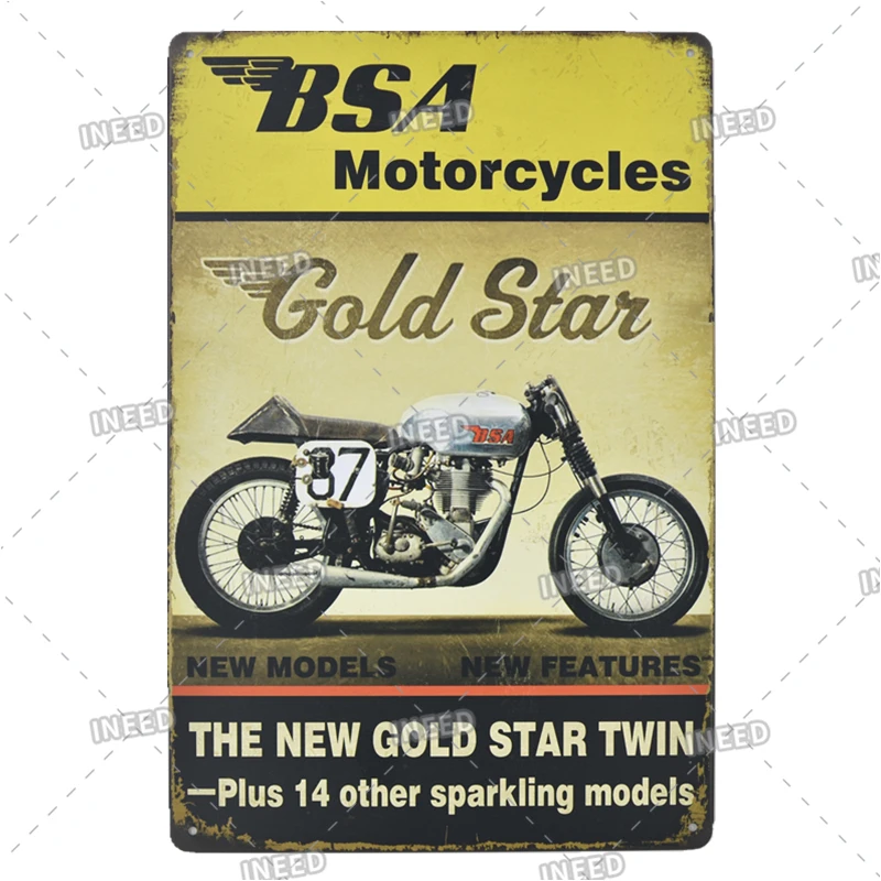Винтажные мотоциклетные постеры, Металлические Картины, BSA Нортон виша, металлическая пластина, украшение, античный мотоцикл, жестяные знаки, настенное искусство, Декор