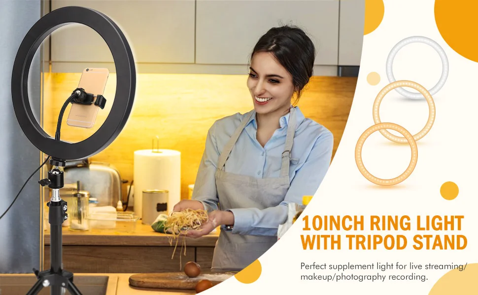 Кольцевой светильник 26 см, со штативом и пультом дистанционного управления для селфи