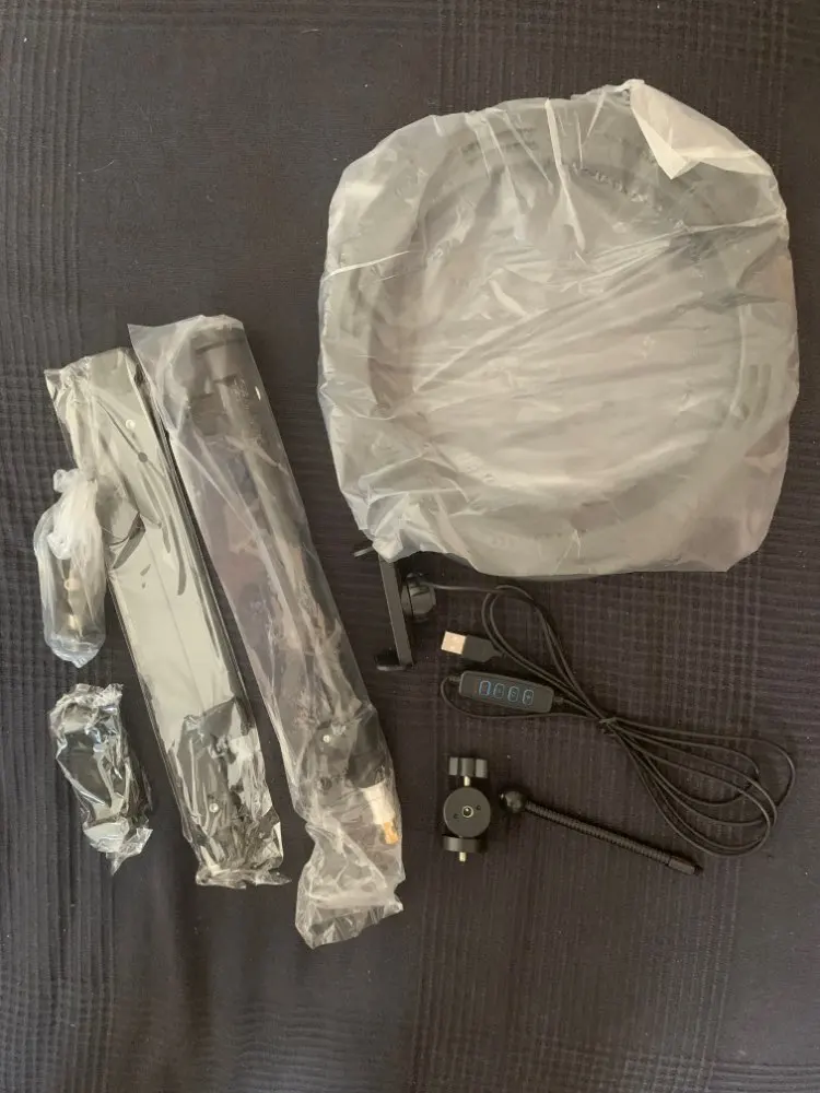Bought on the 11/11 and received on 04/01. Took about nearly 2 months to get here. The handling of the items were so-so as the boxes came a bit crushed. The stand was mostly made out of sturdy metal alloys besides the joints where you tightened the knobs for stability. Speaking of stability, I first had doubts with the ball joint holding up both LED ring light and phone. I couldn’t really get it tightened enough without it slowly slipping down. After reconfiguring the ball joint and the knob, I think I managed to keep both phone and light up.