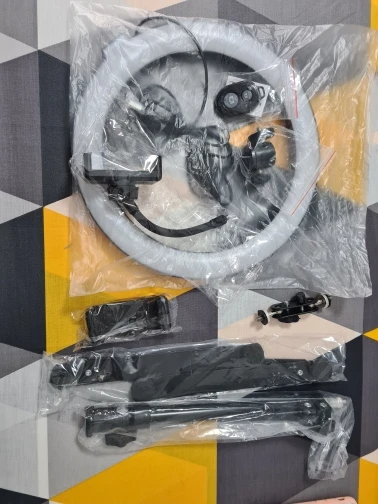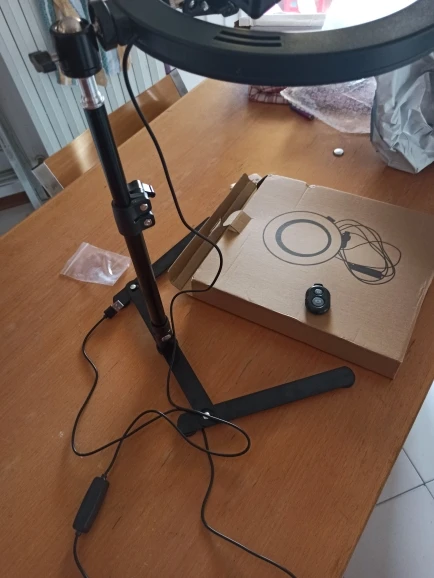 je pensais qu'il manquait un accessoire en fait il était bien present mais, pas le même que celui en photo sur le carton d'emballage ainsi que sur la description... j'avais ouvert un litige mais je l'ai annulé car en fait il est complet! l'anneau est lumineux et fait bien son travail je suis satisfaite je recommande ce vendeur