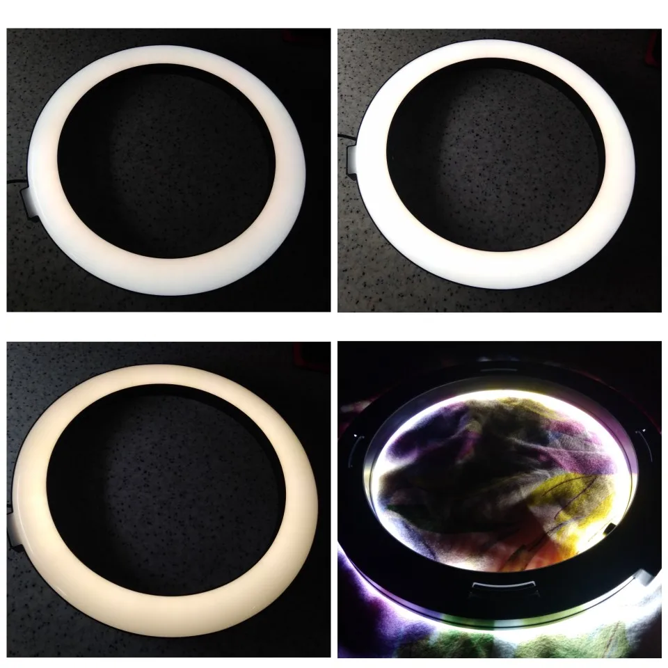 отличный девайс. взял уже второй. 630р отл ценник. 3 режима освещения(белый, теплый, яркий белый) плюс 2 режима диммирования(шаговый, плавный при длительном нажатии). держатель для телефона в комплекте. длина шнура около 1,7м. сделано добротно. правда место крепления к штативу хлипковато. в полной темноте светильника хватает для нормальной съёмки в домашних условиях. видел отзывы про мерцание светодиодов - это легко объяснить: выбросьте свои дешевые зарядники на помойку. использовать исключительно зарядники от 2ампер. потребление тока в светильнике на максималках 1,65ампера. упаковка помятая пришла, но кольцо целое. до екб 10дней с треком.