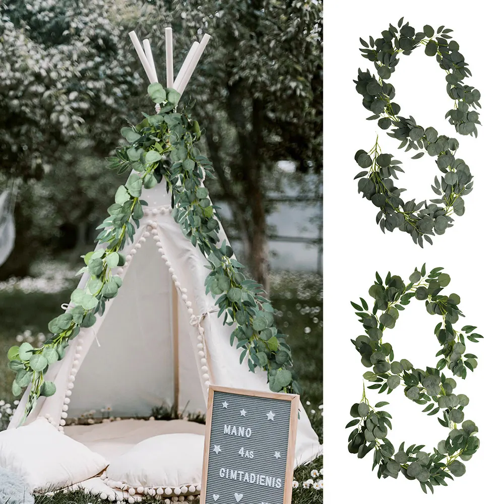 Подвесные искусственные растения, эвкалиптовая гирлянда, листья ивы, пластиковые поддельные растения для домашнего декора, лозы из ротанга, вертикальный садовый декор, 2 м