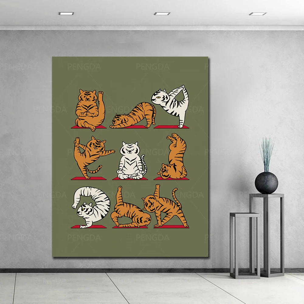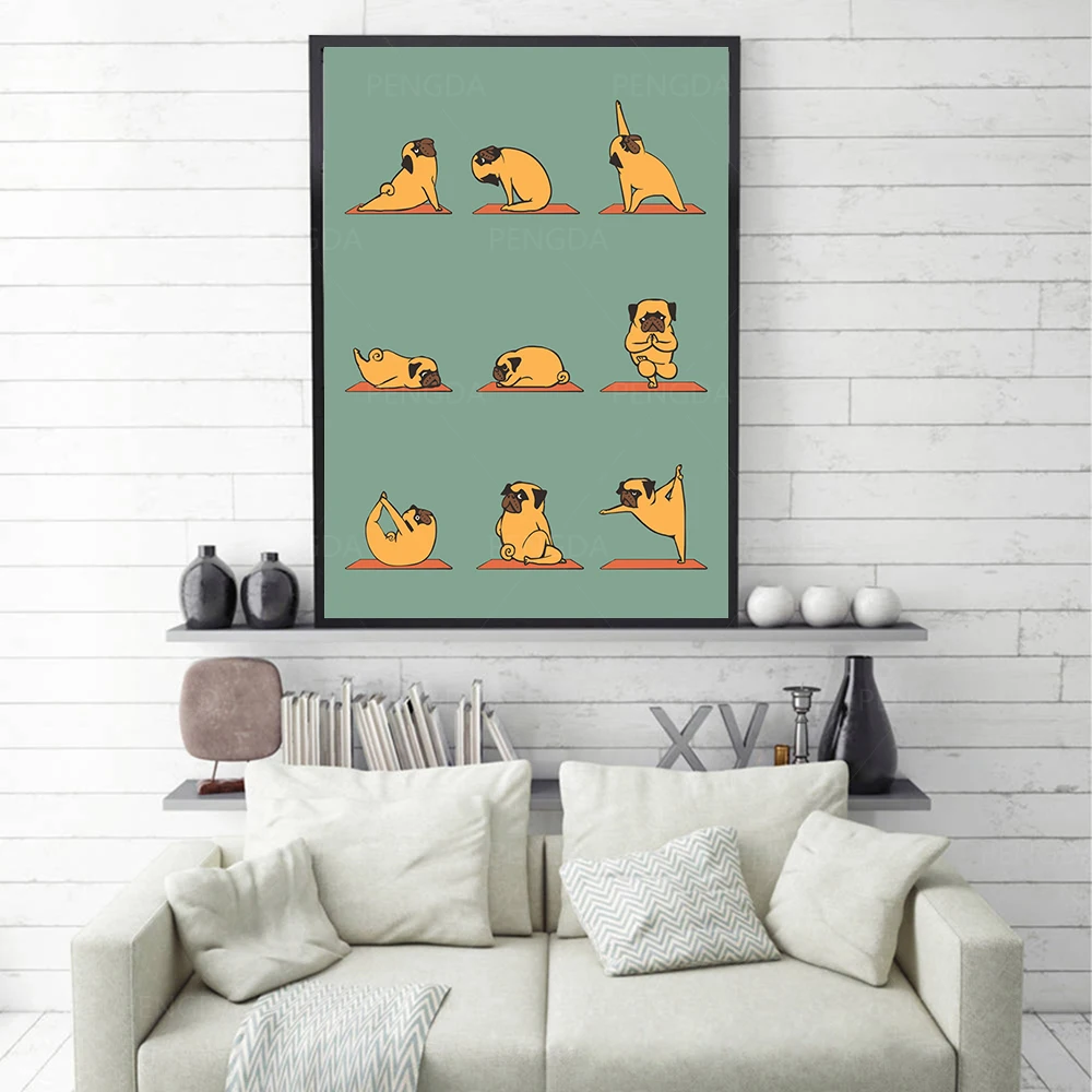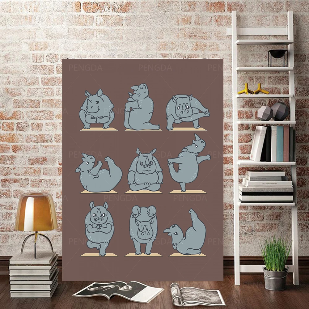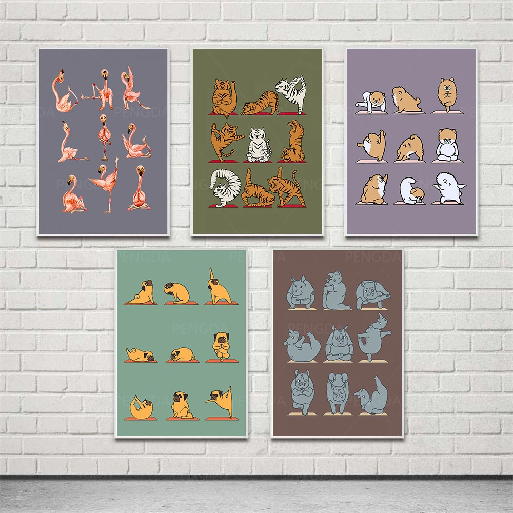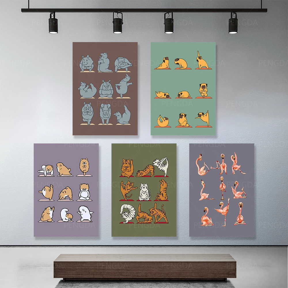 Модульная Картина на холсте для занятий йогой, домашний декор, картины с милыми маленькими животными, современный мультяшный плакат для спальни, настенное искусство