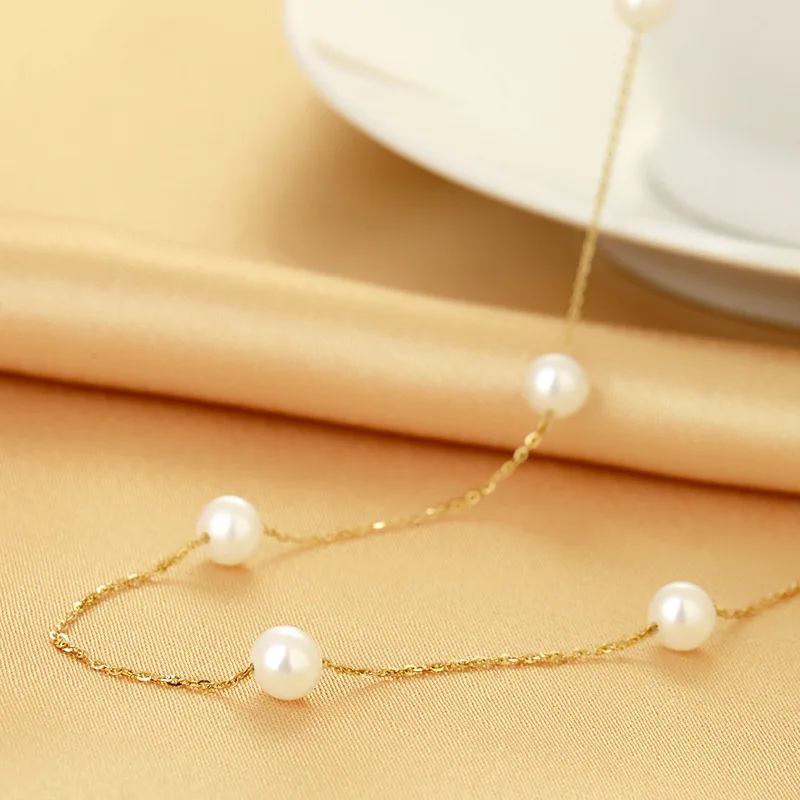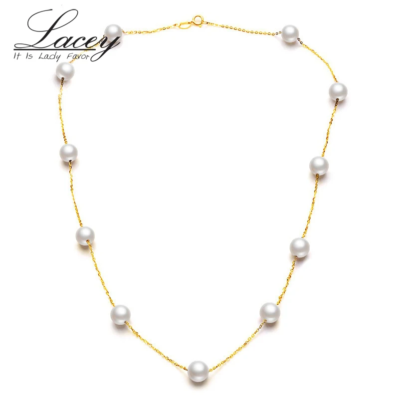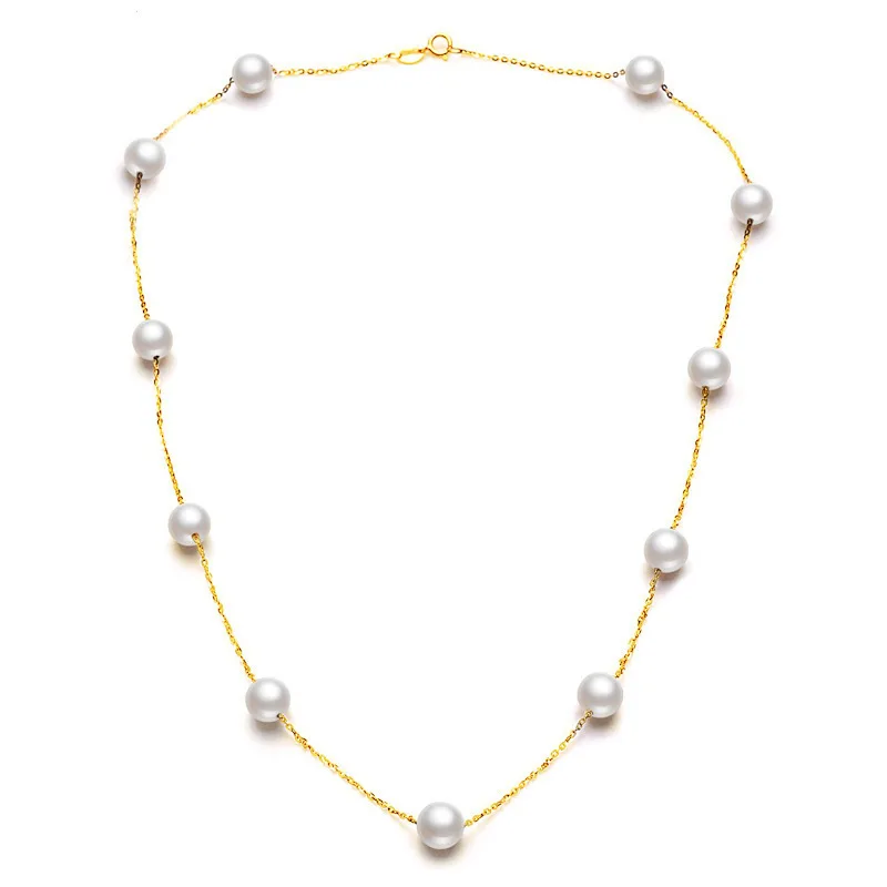 Настоящее ожерелье из 18-каратного золота с круглой жемчужной ожерелье из Гипсофилы для женщин, колье-чокер из пресноводного жемчуга, свадебные ювелирные изделия