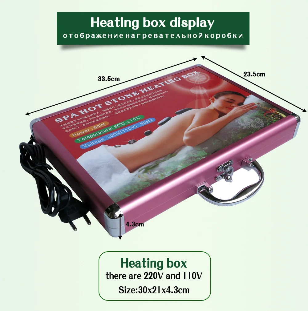 Набор для массажа Tontin с горячим камнем, нагревательная коробка для снятия стресса, боли в спине, уход за здоровьем, акупрессурные камни из лавы и базальта