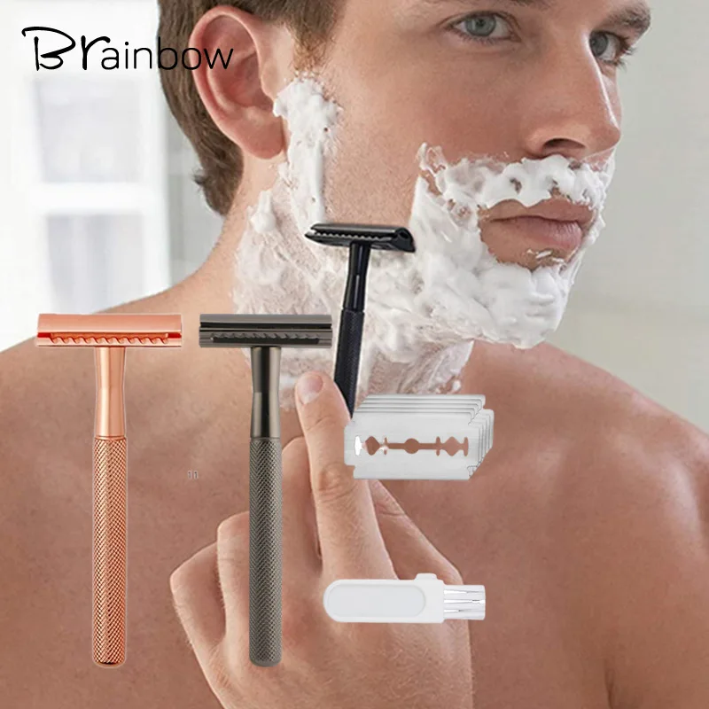 Безопасная бритва Brainbow, Мужская бритва с двойными краями, Классическая Ручная бритва для женщин, удаление волос с 5 лезвиями для бритья
