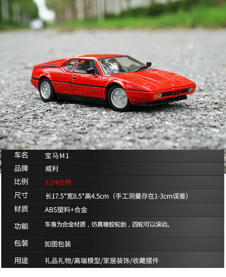 Модель автомобиля WELLY 1:24 BMW M1 из сплава, имитация автомобиля, украшение для коллекции, подарок, игрушка, литье под давлением, модель игрушка для мальчиков