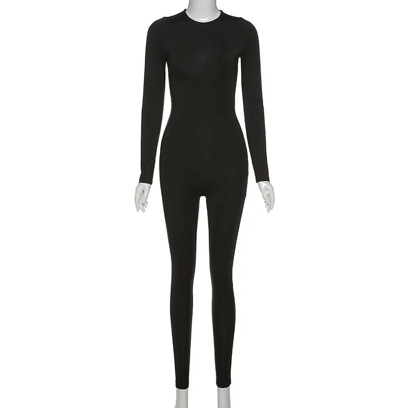Черный комбинезон с длинным рукавом, женский наряд, модная спортивн...