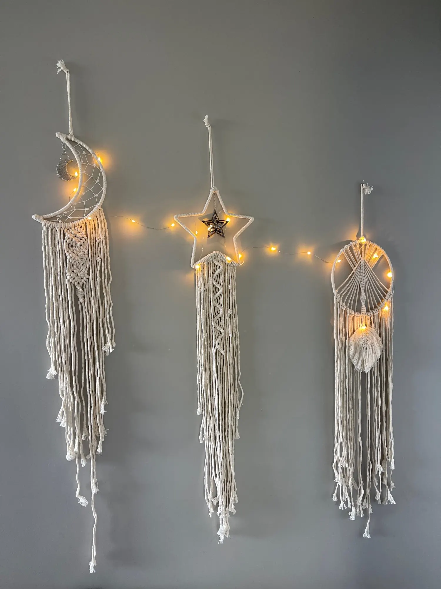 Макраме Луна Звезда Ловец снов настенный подвесной гобелен Бохо домашний декор ручной работы для детей девочек Рождественский Декор для комнаты подарок