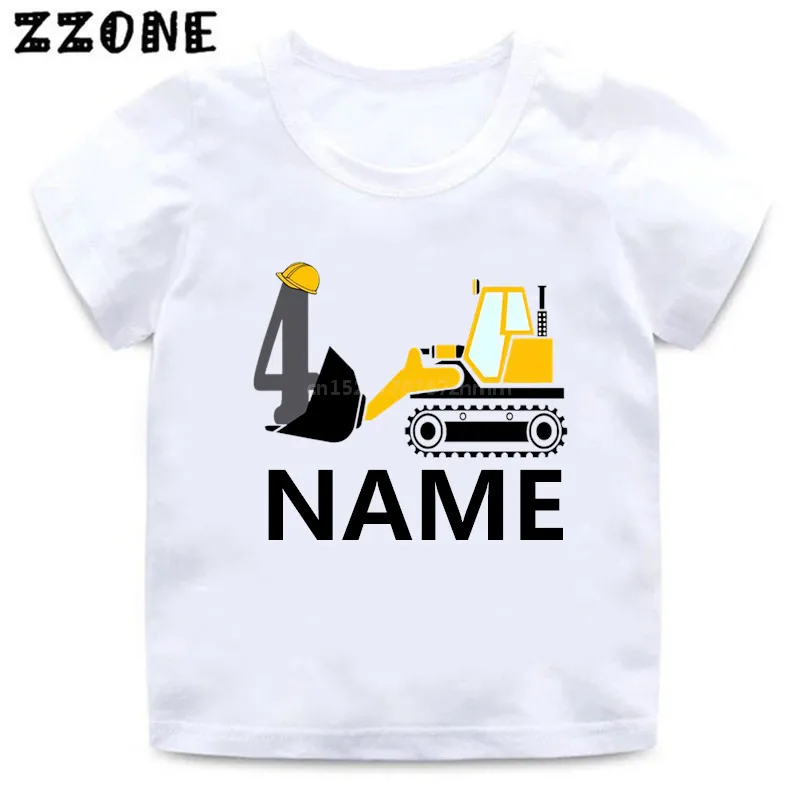 Футболка с именем на заказ футболка для мальчиков с изображением экскаватора на день рождения номер 1-9 Топы для маленьких девочек Забавный подарок, детская одежда подарок HKP2468