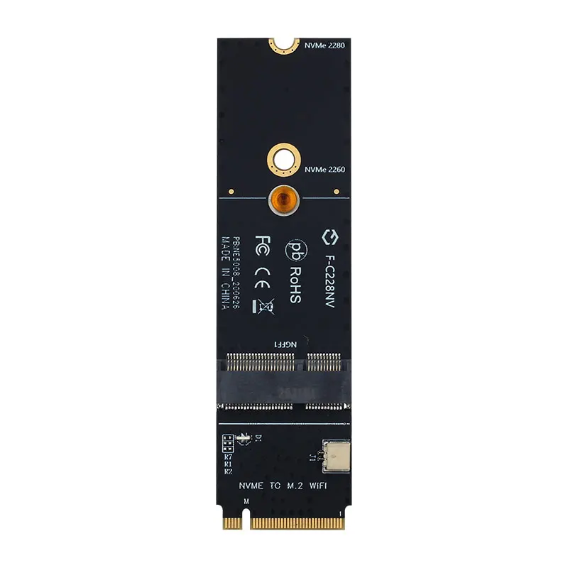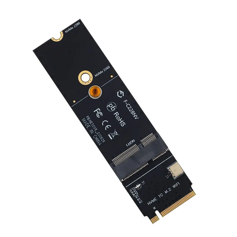 Модель: F-C228NV Преобразуйте интерфейс M.2 KEY-M материнской платы или ноутбука в A-E ключа M.2 или E-интерфейс ключа. Примечание: Этот адаптер не поддерживает ни одну из ключей и E-Key, беспроводные сетевые карты Протокола CNVI.