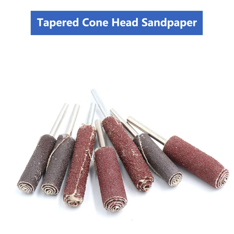 5 шт. коническая конусная головка, палочка для наждачной бумаги, Стальной хвостовик и наждачная бумага для полировки, шлифовки, абразивного зерна, палочки для шлифовки