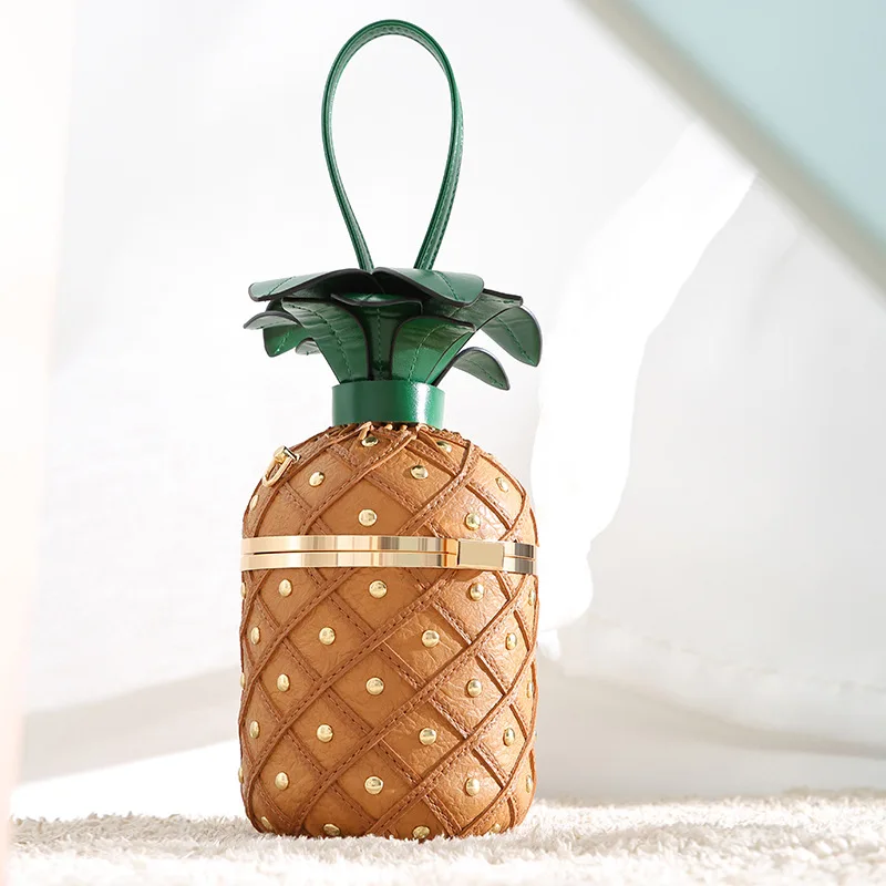Сумка-мессенджер женская летняя на одно плечо, 13x29 см, с цепочкой и заклепками, a6945, сумка в виде ананаса