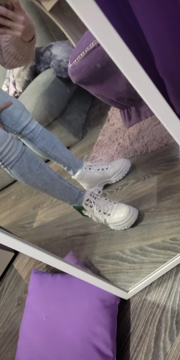Как на картинке. Есть небольшой запах. На 35 российский взяла 36р, чтобы с носком носить. На широкую ногу будут узковатыми. Почему то в один ботинок вложили вкладку, а во второй нет. На фото видно , что носок замялся. Надеюсь, что расправиться.