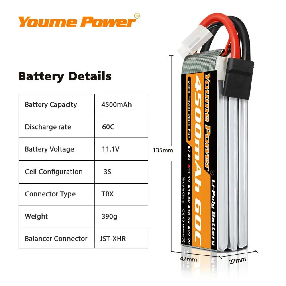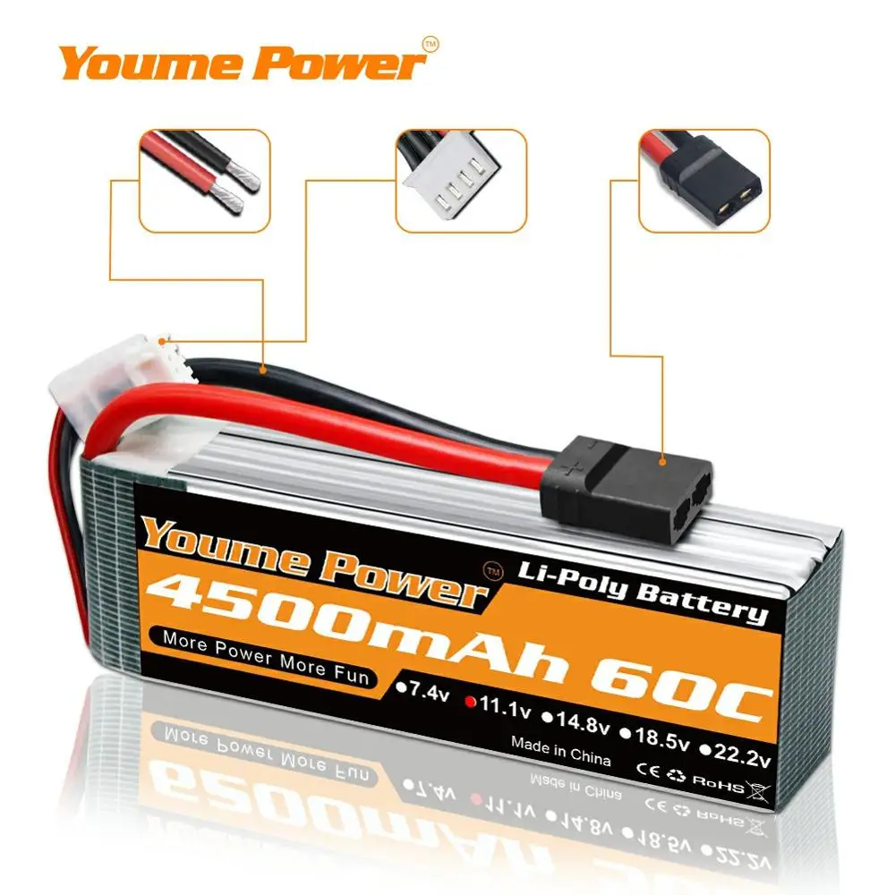Литий-полимерный аккумулятор Youme 11,1 В 4500 мАч 3S 60C XT60 EC3 T Deans EC5 XT90 для Traxxas Slash 110, детали для радиоуправляемых автомобилей, 2 шт.