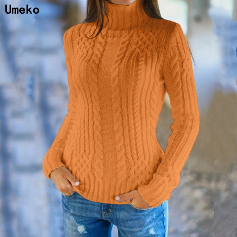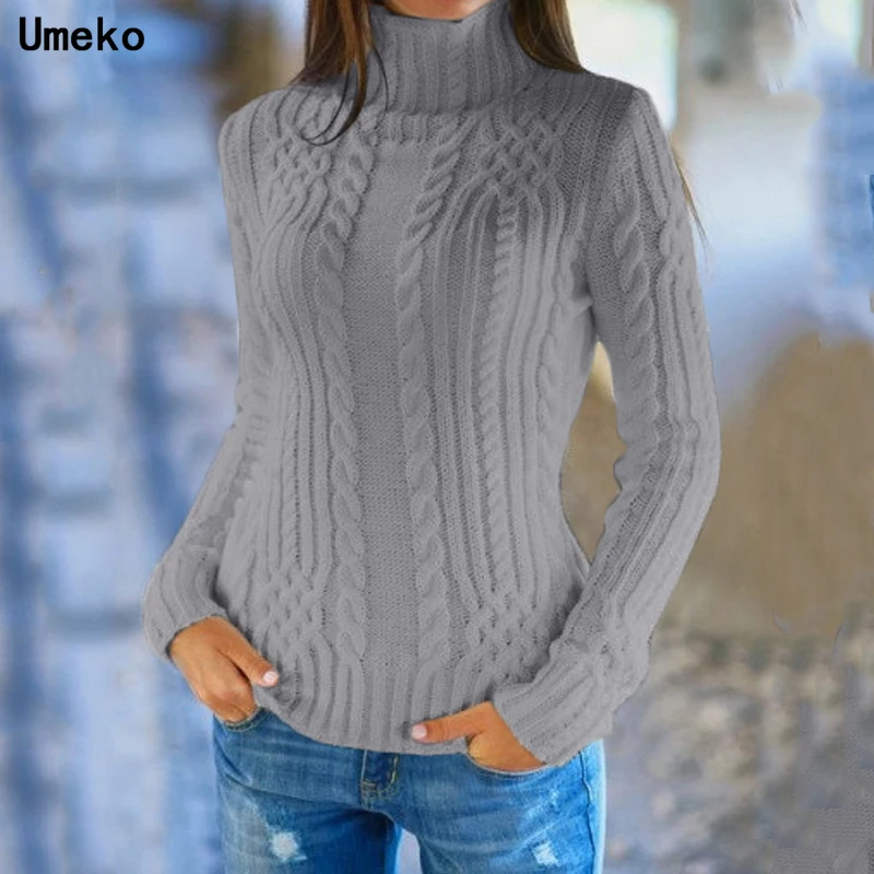 Свитер женский осенне-зимний вязаный с высоким воротом, 2020