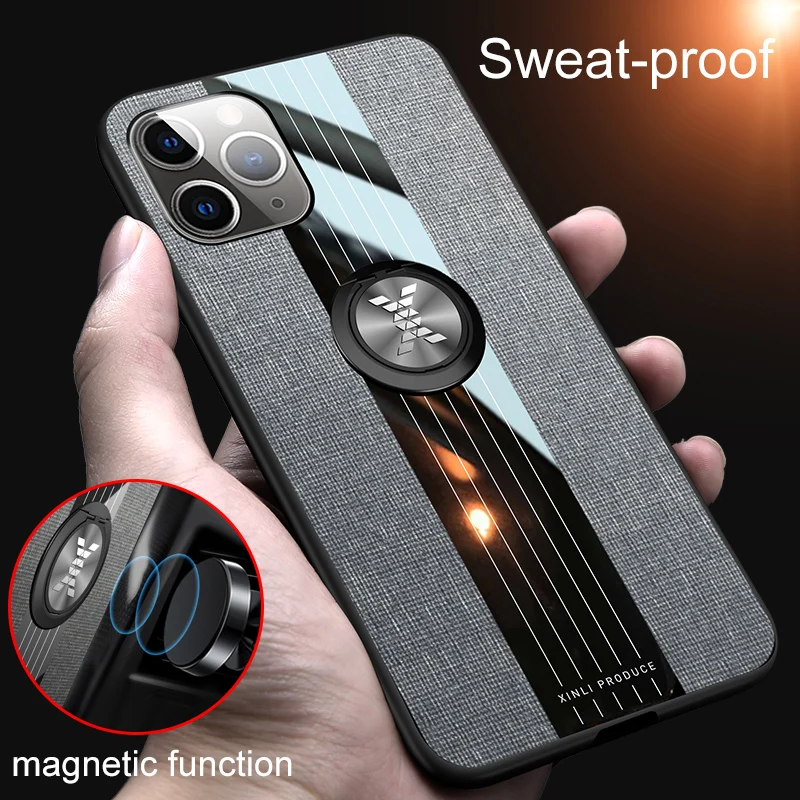 Ультратонкий тканевый чехол с магнитным держателем для телефона iPhone 13, 12, 11 Pro, XS Max, XR, X, 8, 7 Plus, роскошный тканевый силиконовый чехол с отстрочкой
