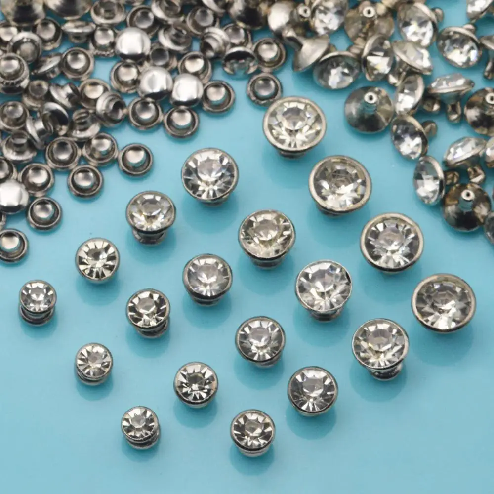 100 шт стеклянные хрустальные двойные колпачки с заклепками для ногтей, кожевенное ремесло, сумки для обуви, принадлежности для рукоделия 5 мм 6 мм 7 мм 8 мм 9 мм 10 мм