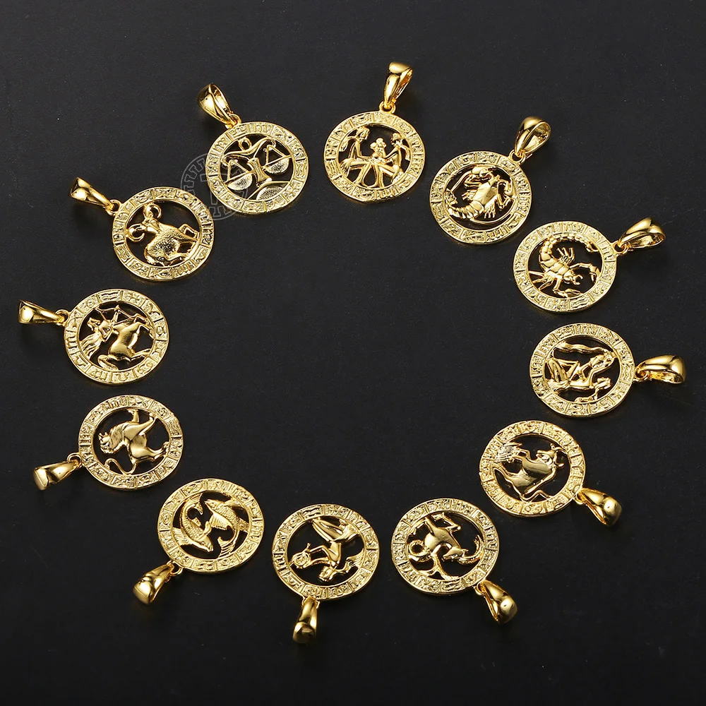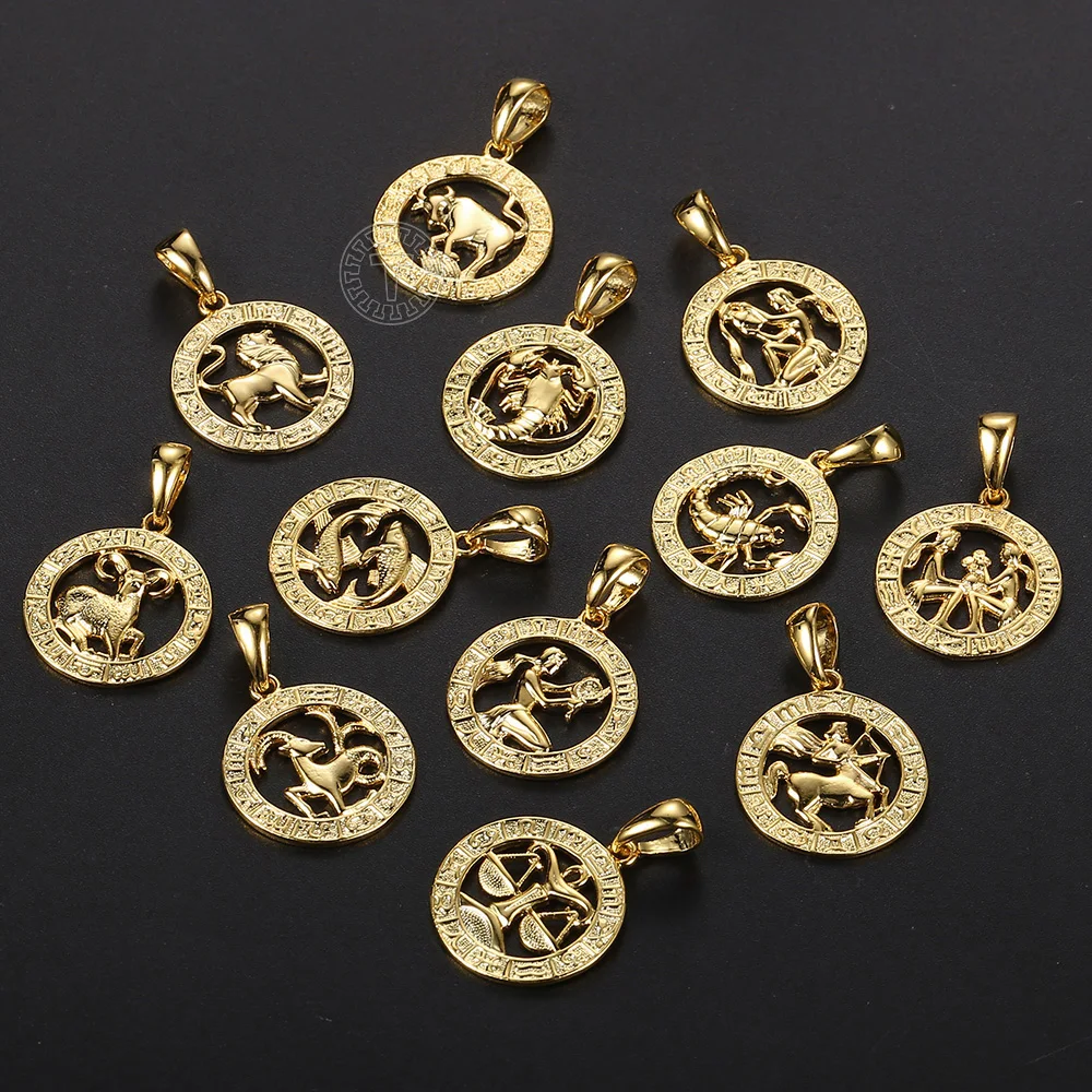 Подвеска для женщин и девочек 12 шт.компл., Лев Таурус, круглая позолоченная бижутерия, дропшиппинг, оптовая продажа, 12 шт.компл., GPM24US