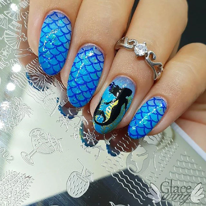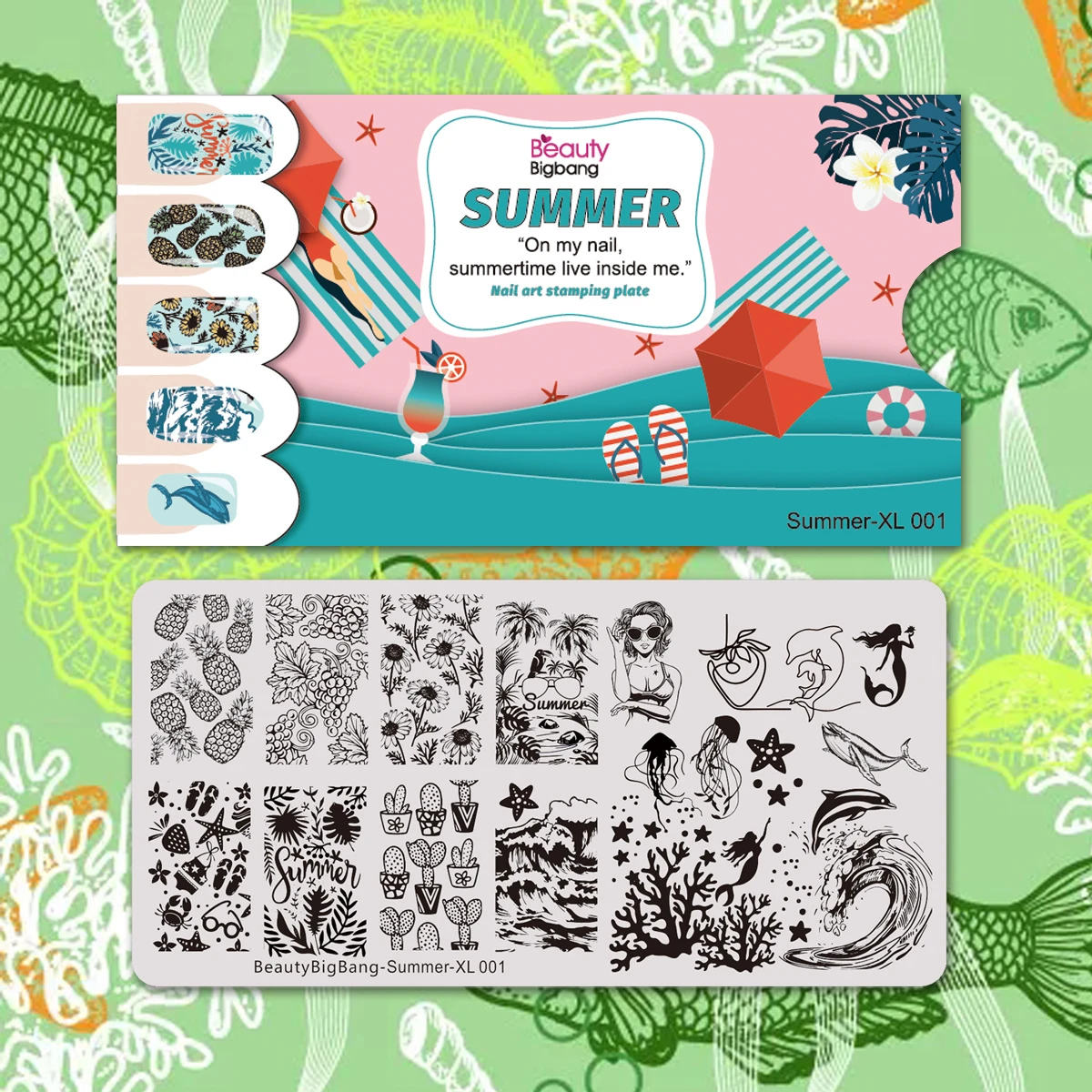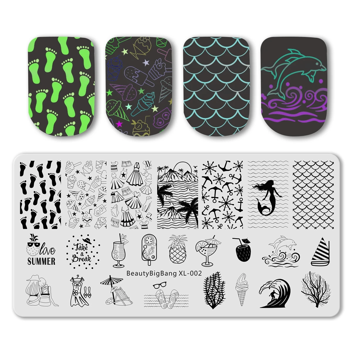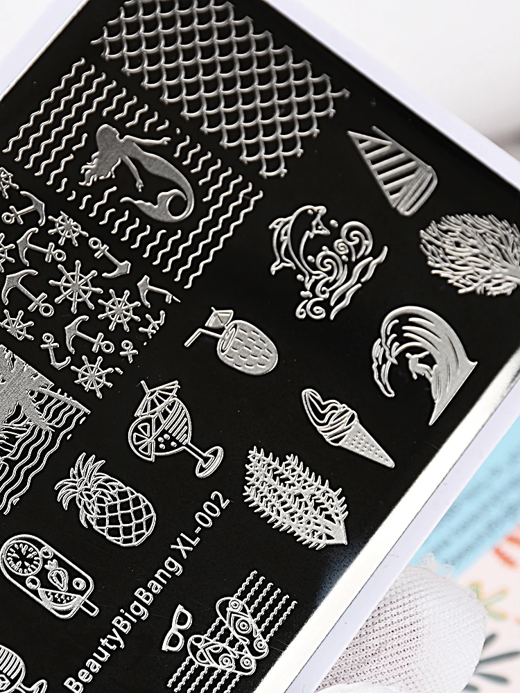 Трафарет для стемпинга Beauty Big Bang, трафарет из нержавеющей стали для дизайна ногтей в классическом стиле, с изображением морской волны, лето
