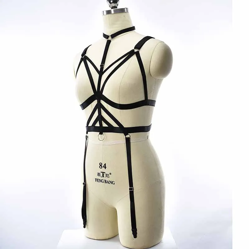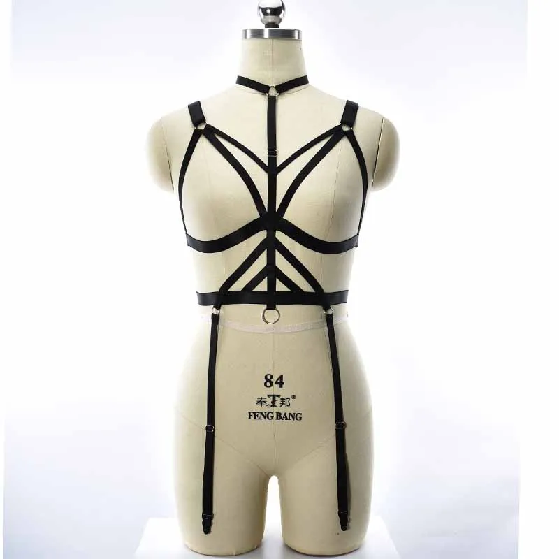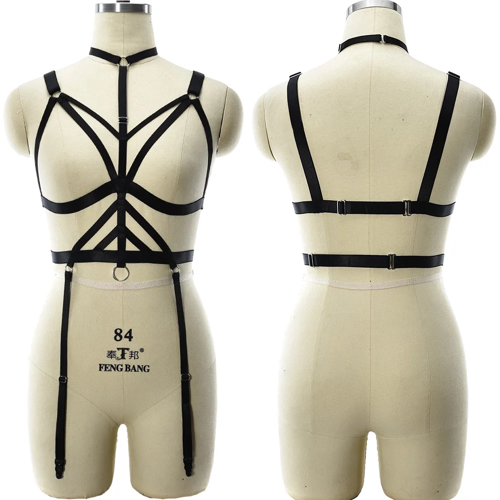 Женское белье Harnes комплект черное сексуальное боди подвязка в готическом стиле с поясом, бюстгальтер с открытой грудью, в стиле панк вибратор Эротические жгут женщина тела бел