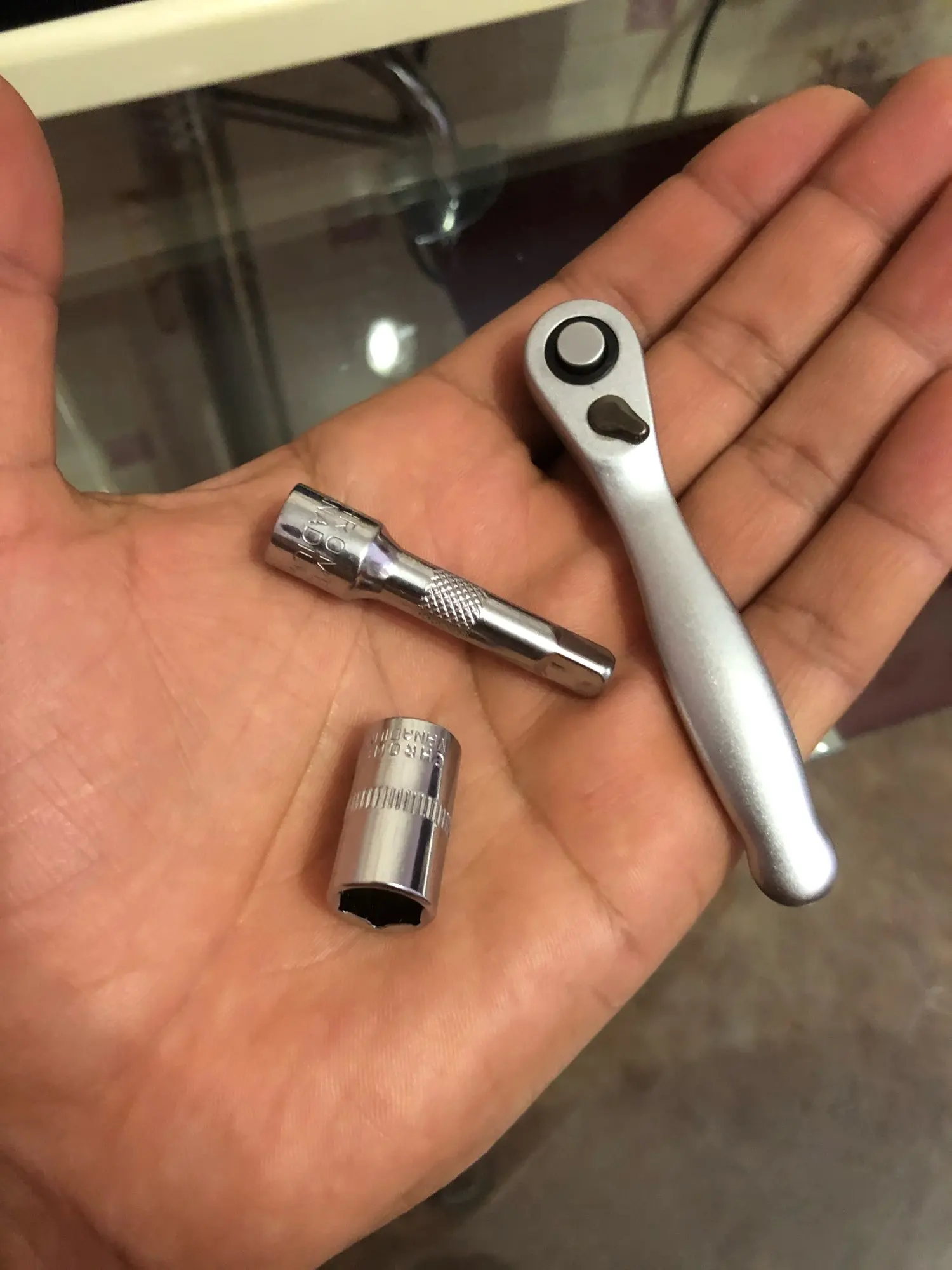 Пришло моментально что очень радует! На первый взгляд товар качественный и увесистый, но есть один минус: на одном удлинителе не очень то и хорошо запрессован фиксирующий подшипник из-за этого инструмент плохо фиксируется в трещетке на фото все видно.