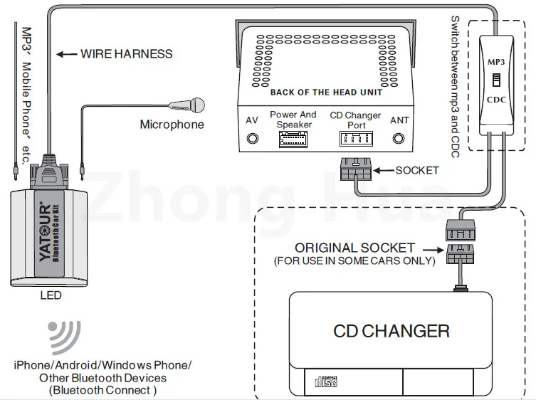 Примечание:Перед подачей заявки, пожалуйста, подтвердите, что ваш автомобиль может использовать этот CD changer, если это возможно