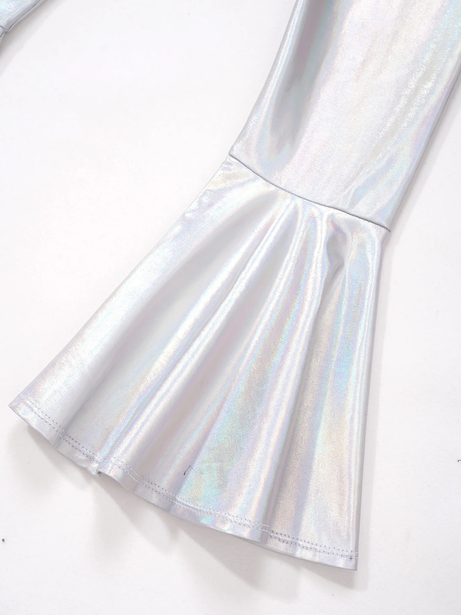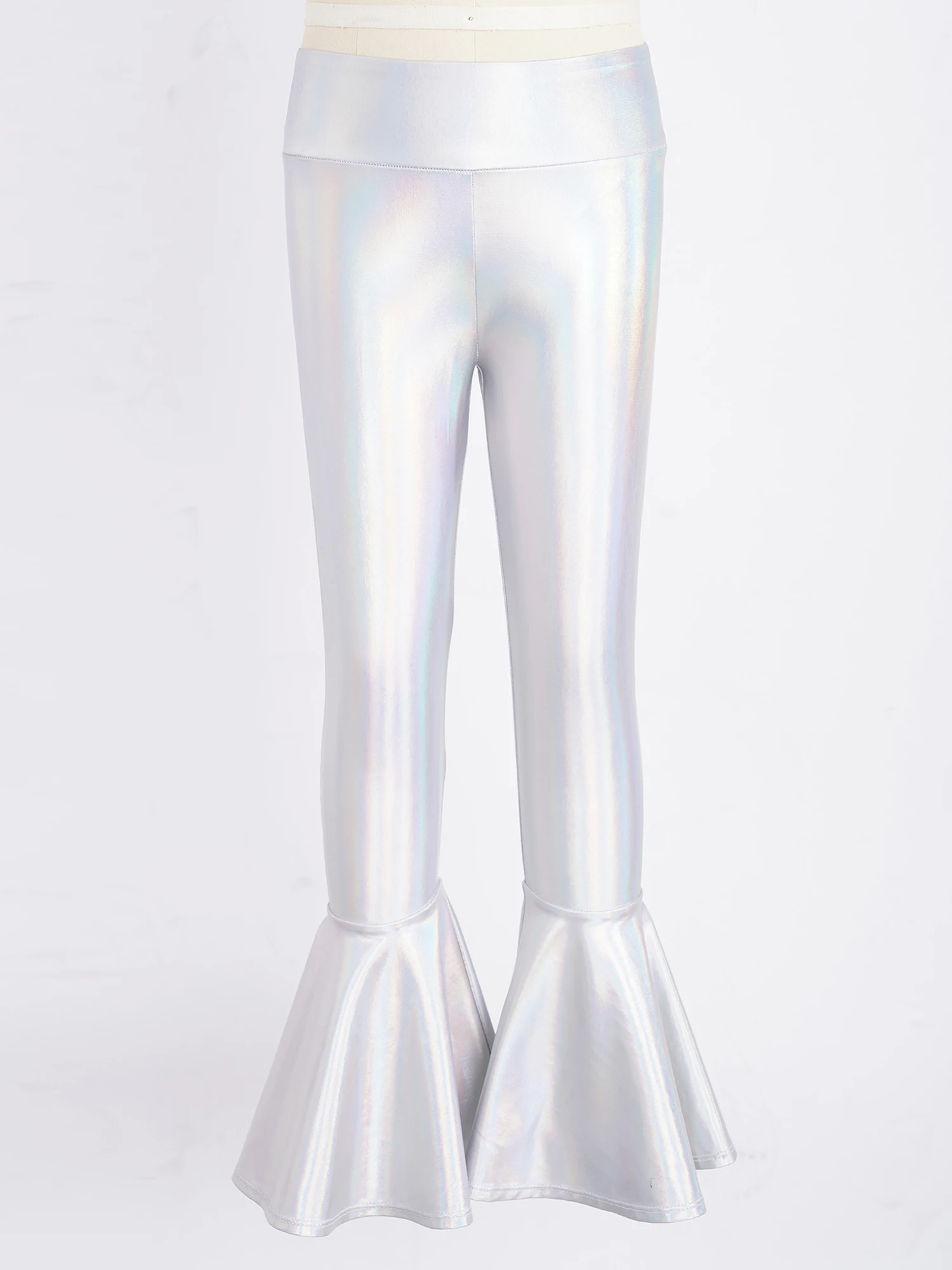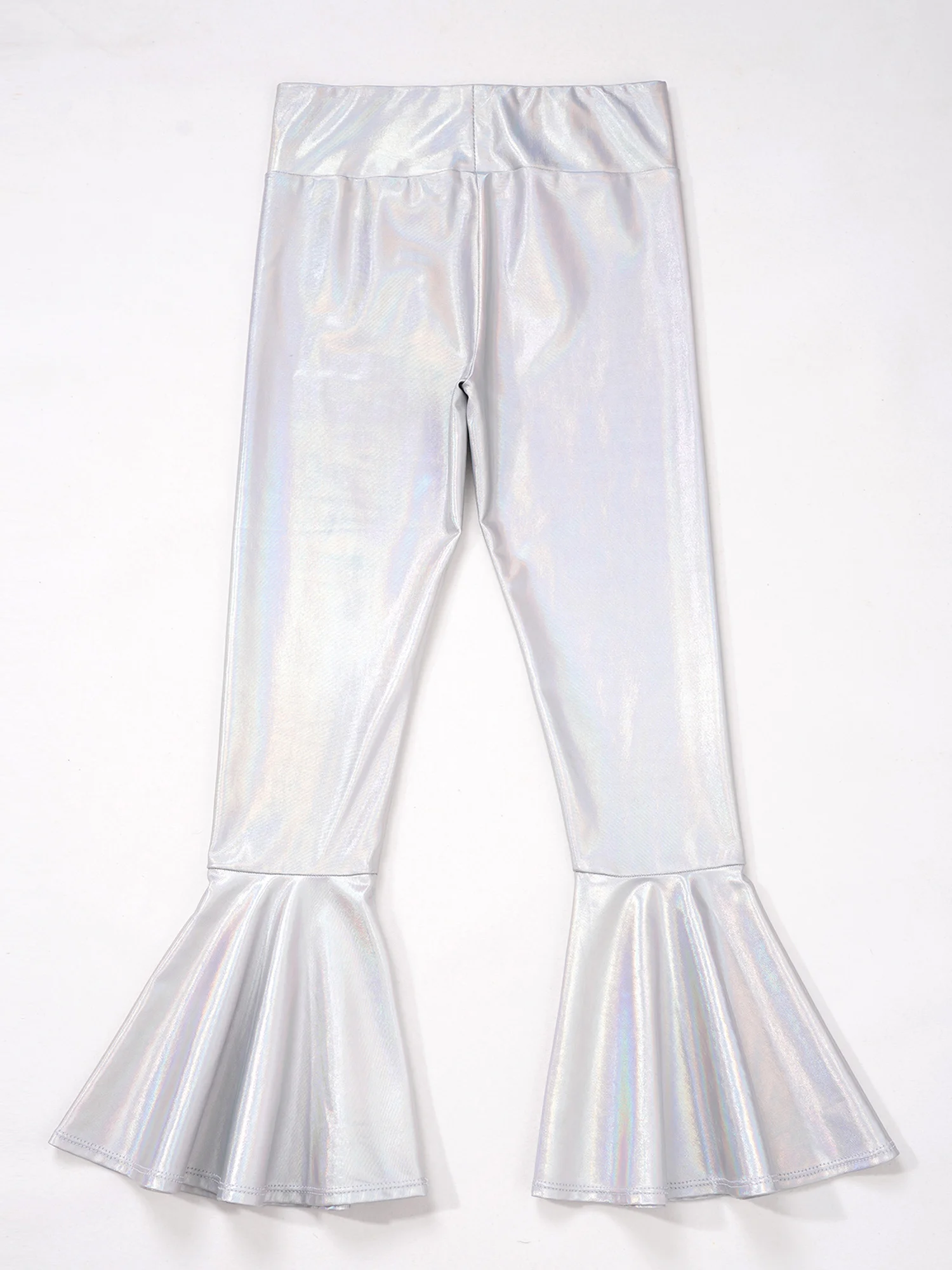 Особенности:Брюки изготовлены из полиэстера, рекомендуется ручная стирка.Таблица размеров означает возраст для девочек, но они предназначены только для общего руководства.Эластичный пояс обеспечивает хорошую растягиваемость. Глянцевый металлический внешний вид. Затяните на застежке.Расклешенные брюки. Хорошая эластичная ткань, приятная на ощупь, мягкая и удобная в носке.Идеально подходит для вечерние, выступлений, костюмы, Танцы соревнований и любые другие особые случаи.