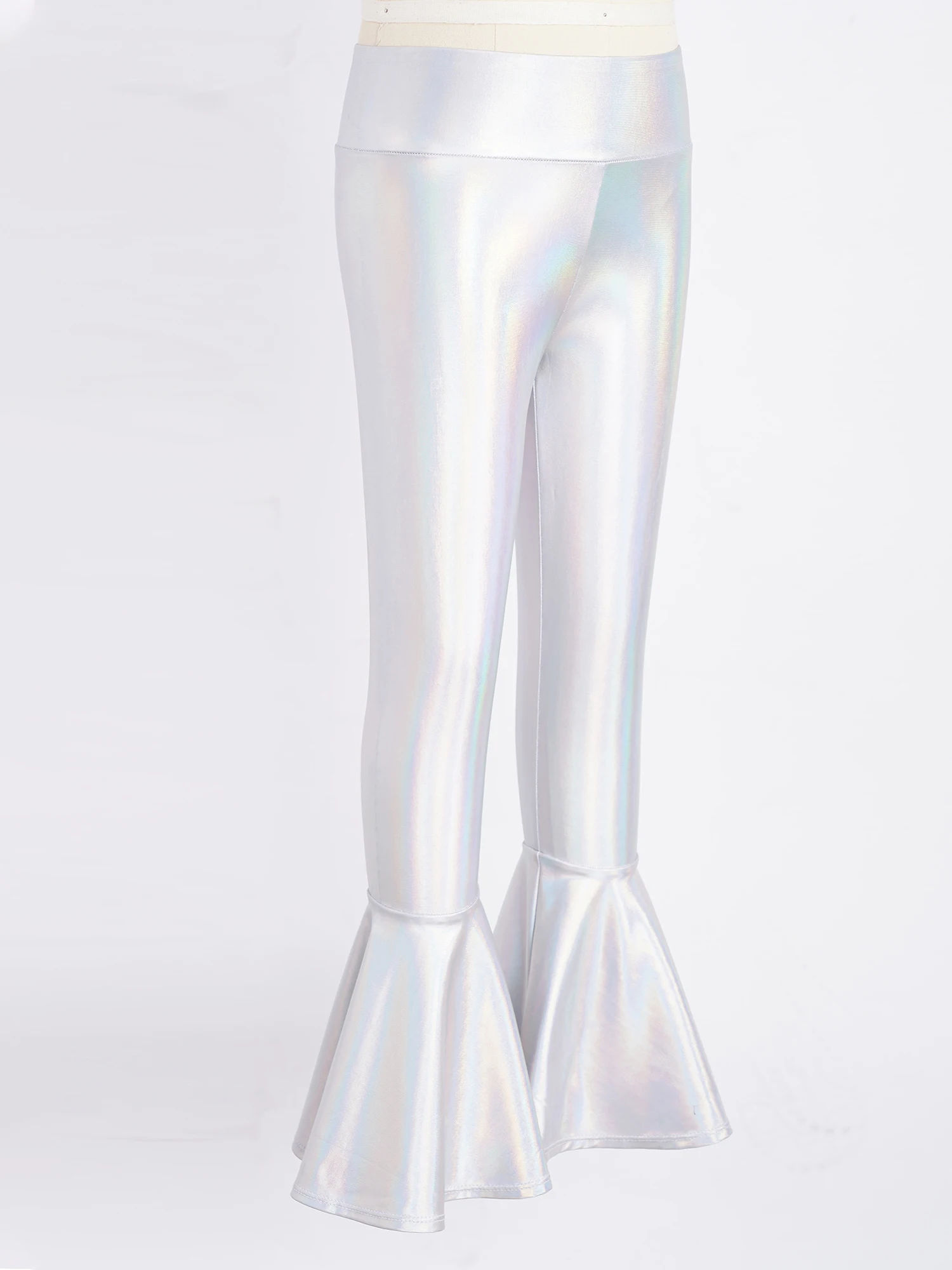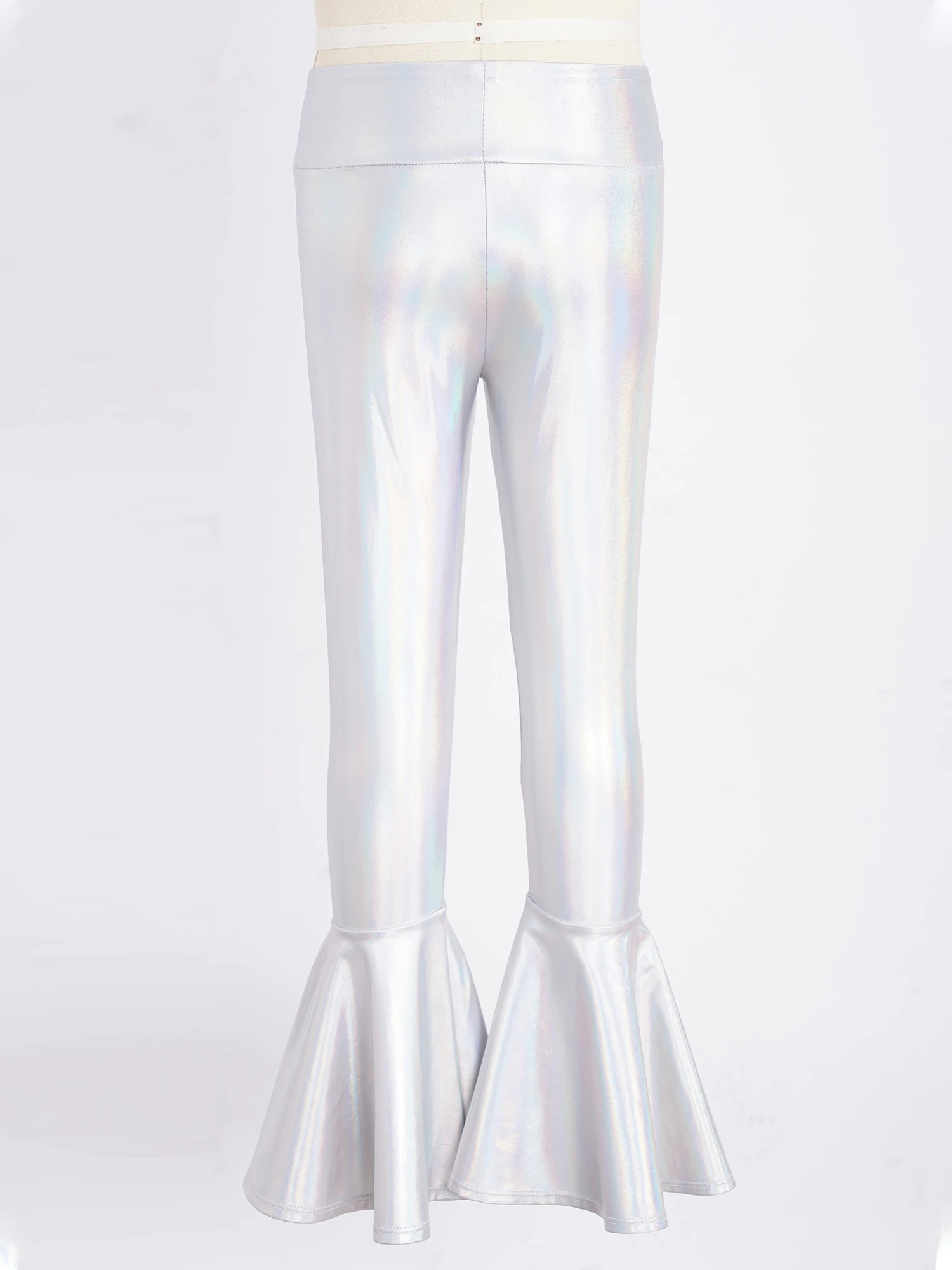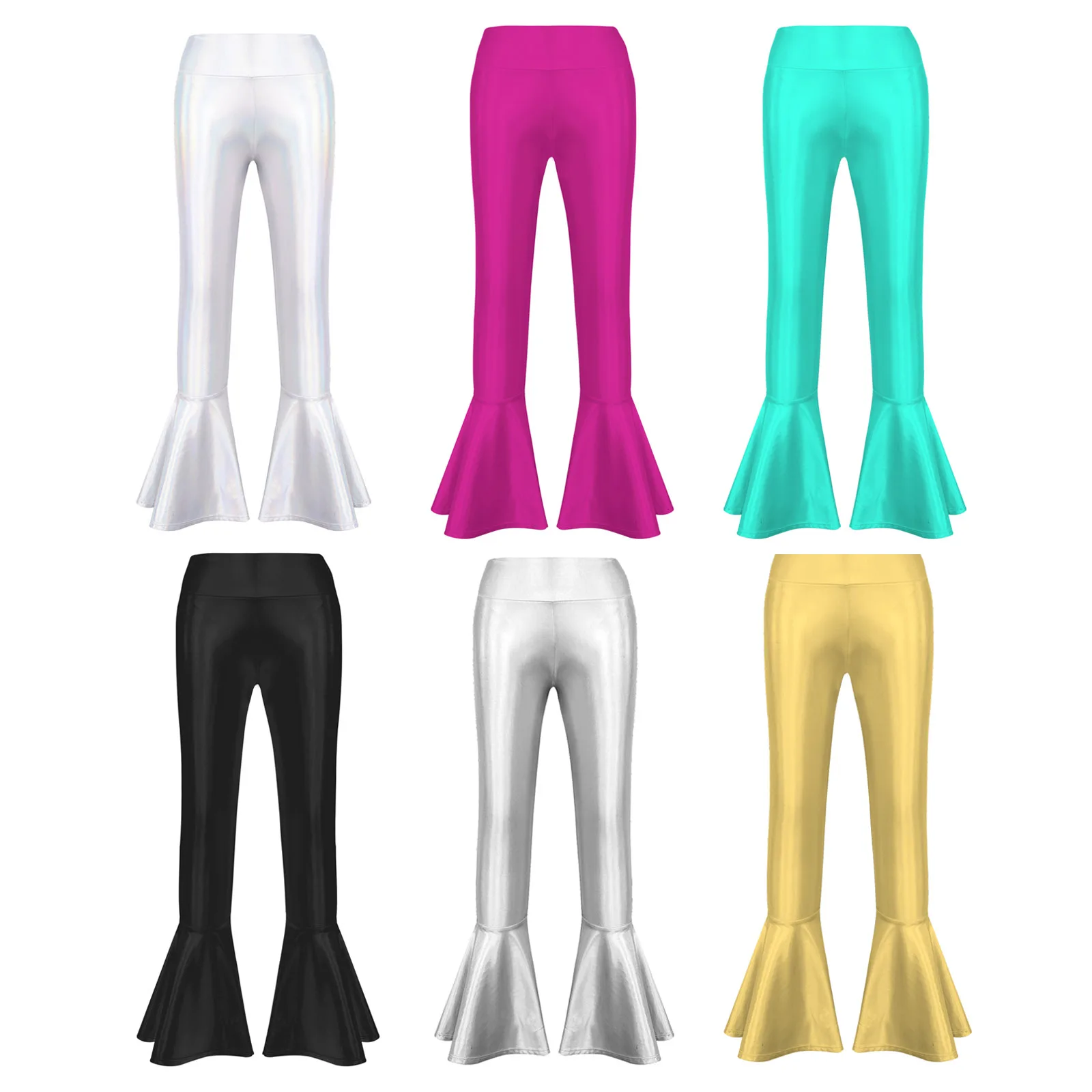 Новинка, блестящие леггинсы для девочек с металлическим блеском, блестящие штаны, детские леггинсы с оборками для сцены, брюки для соревнований