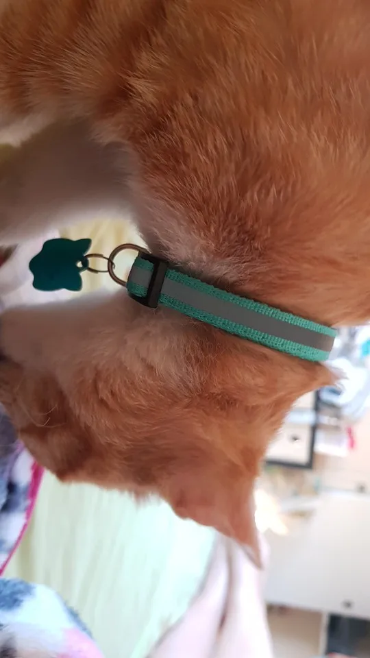 Super obojek, reflexnhi, zapina vhodnte pro kocky. V pxrcipadě zahabinuthi от se měl obojek rozepnout.