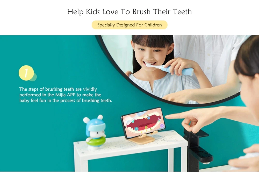 • Специально разработанная для детей, вы можете получить яркие шаги чистки зубов, сопровождение музыки и виртуальные награды, чтобы дети были заинтересованы в приложении Mi Home.