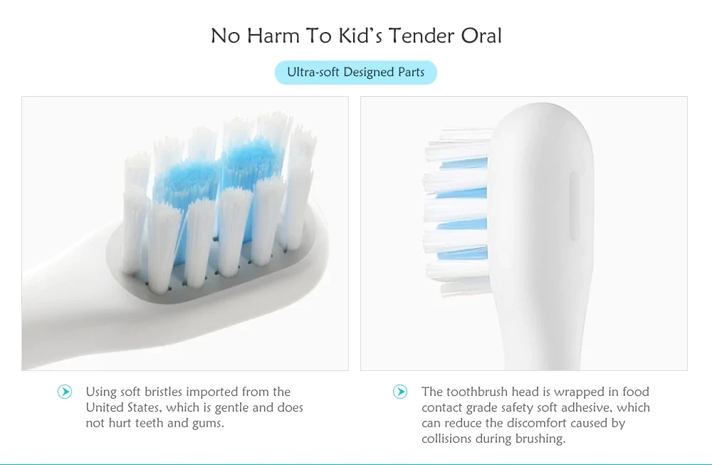 • Ультра-мягкие части щетины и головки зубной щетки очень мягкие, чтобы заботиться о оральной полости детей.