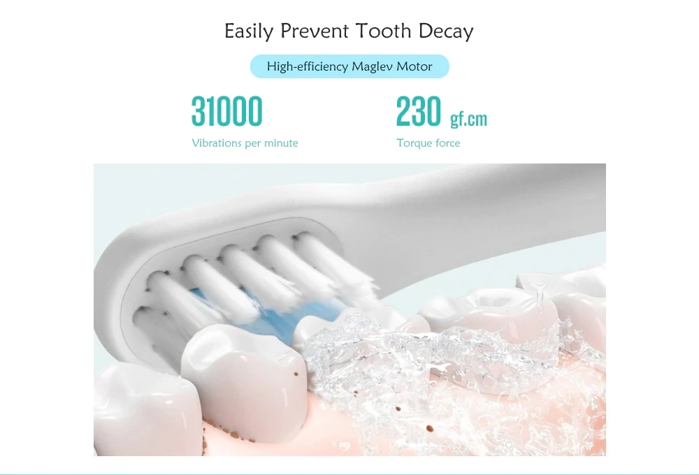 • Предотвращает распад зубов, оснащенный высокоэффективным двигателем, приносит потрясающий эффект очистки.