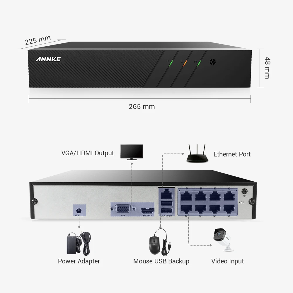 Система видеонаблюдения ANNKE, домашняя камера безопасности, 8 каналов, 6 МП, POE, H.265 + NVR, 2 Мп, 3 Мп, 4 МП, 5 МП, 6 МП, IP