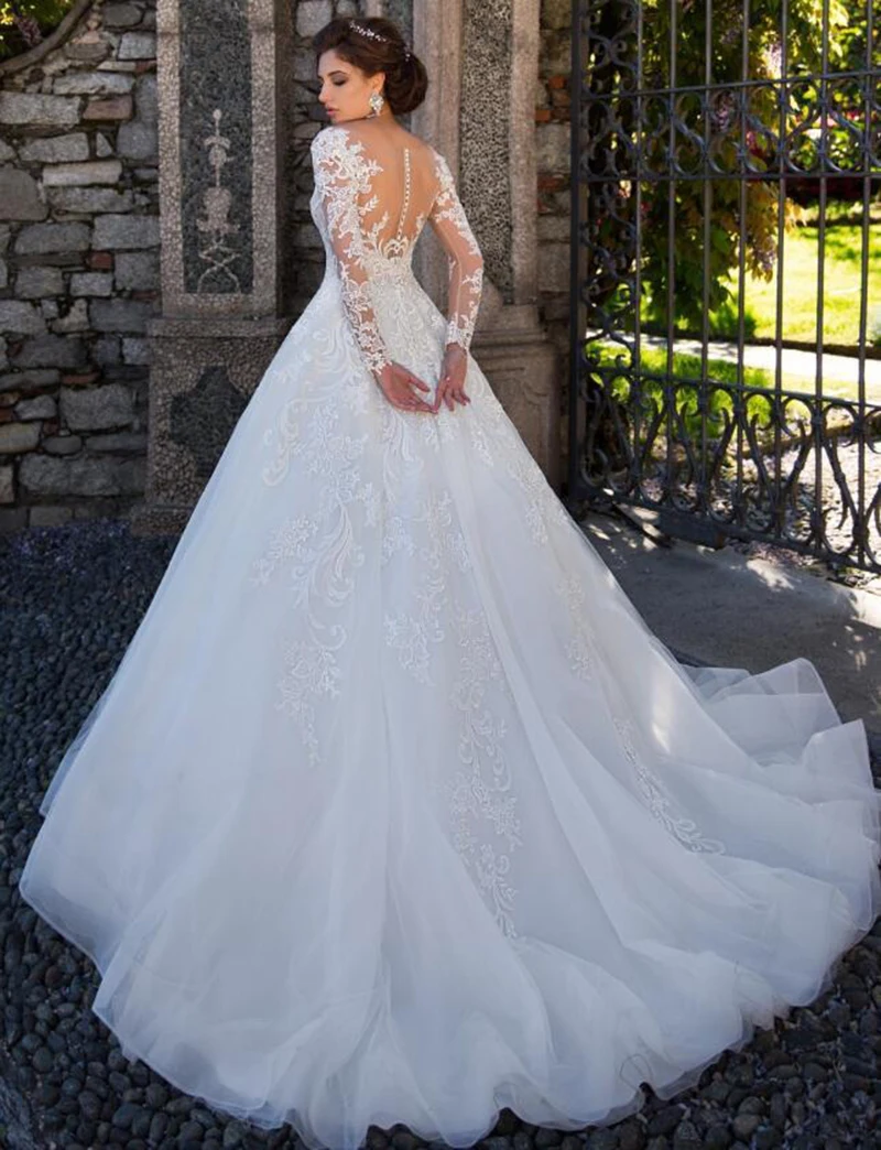 Женское свадебное платье с длинными рукавами, Кружевная аппликация ...