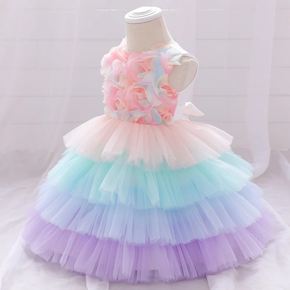 Праздничное платье на день рождения для девочек от 1 года Радужное платье принцессы без рукавов с трехмерными лепестками