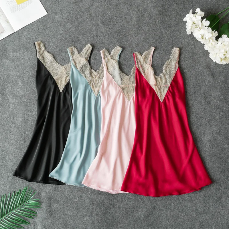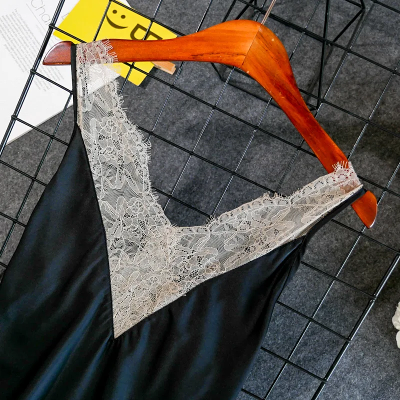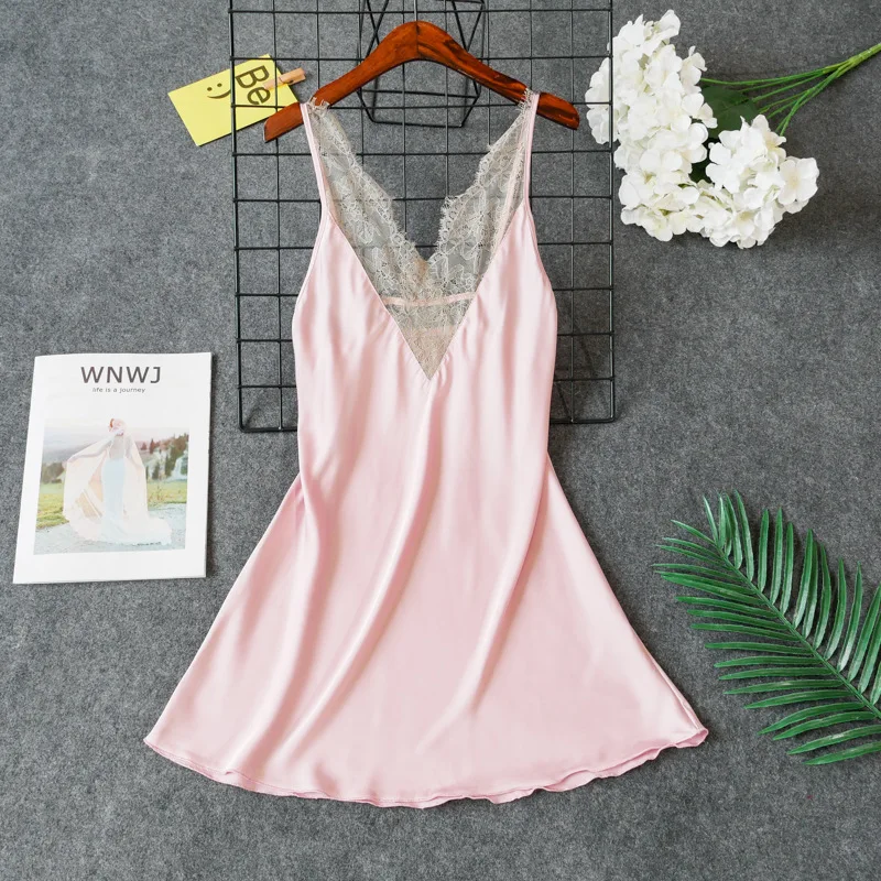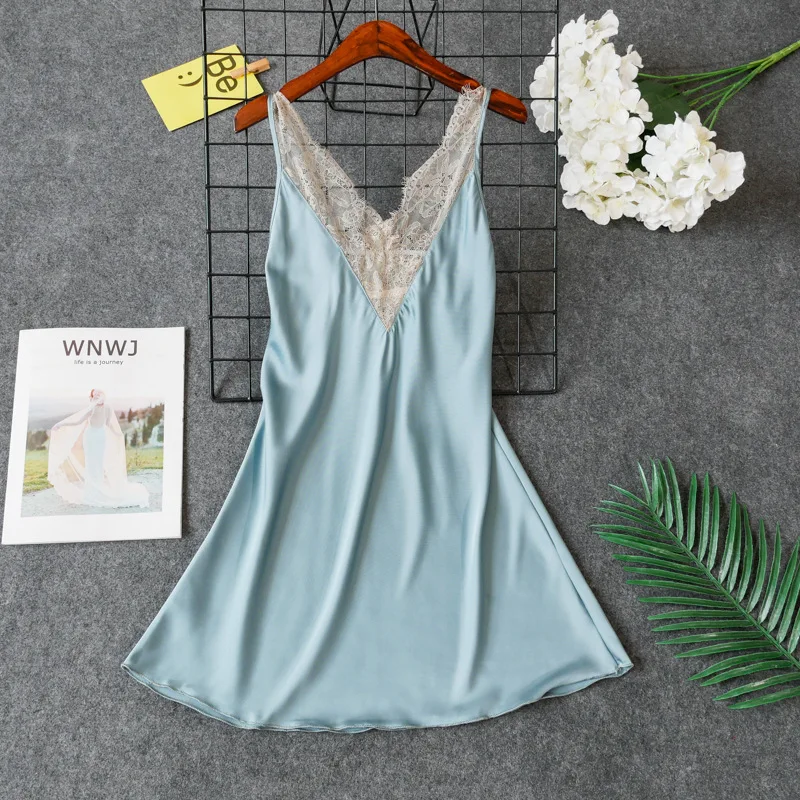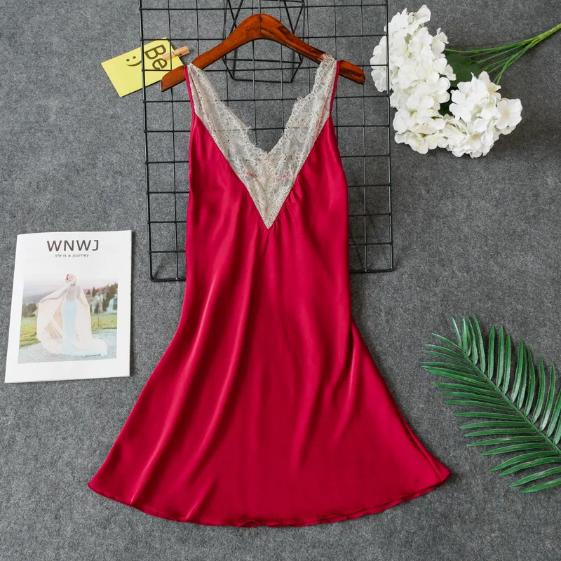 Ночная сорочка Daeyard Женская шелковая, пикантная кружевная ночная рубашка с глубоким V-образным вырезом и открытой спиной, удобная домашняя одежда